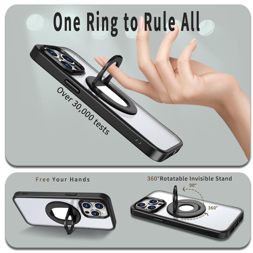 Прозрачный чехол для iPhone 15 14 13 12 11 Pro Max с вращающимся на 360° магнитным кольцом-держателем, совместимый с Magsafe чехол