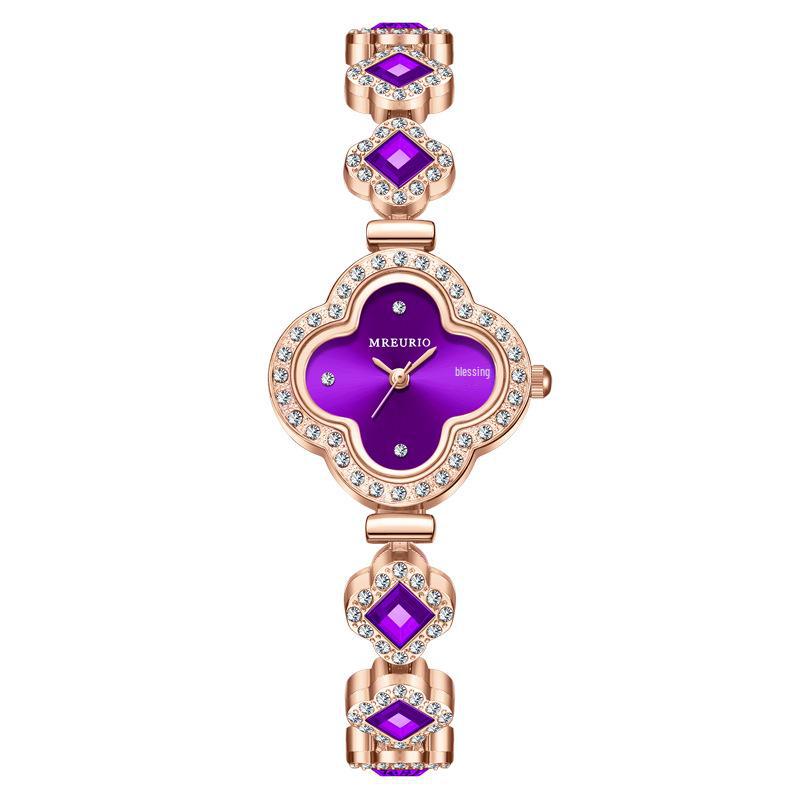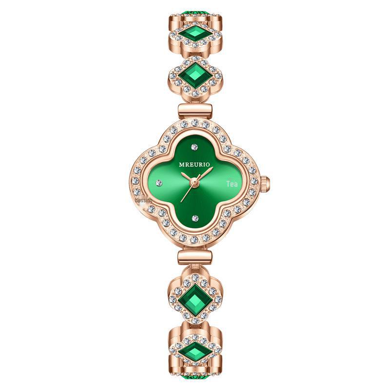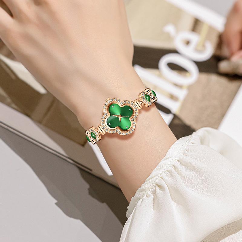 Изумрудный браслет с четырехлистным клевером, кварцевые часы для женщин