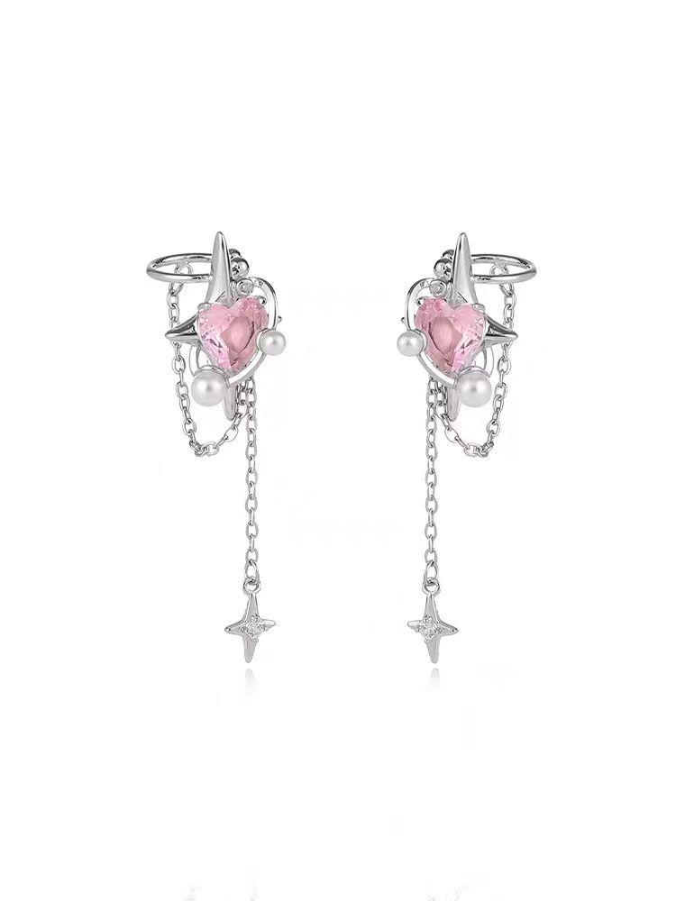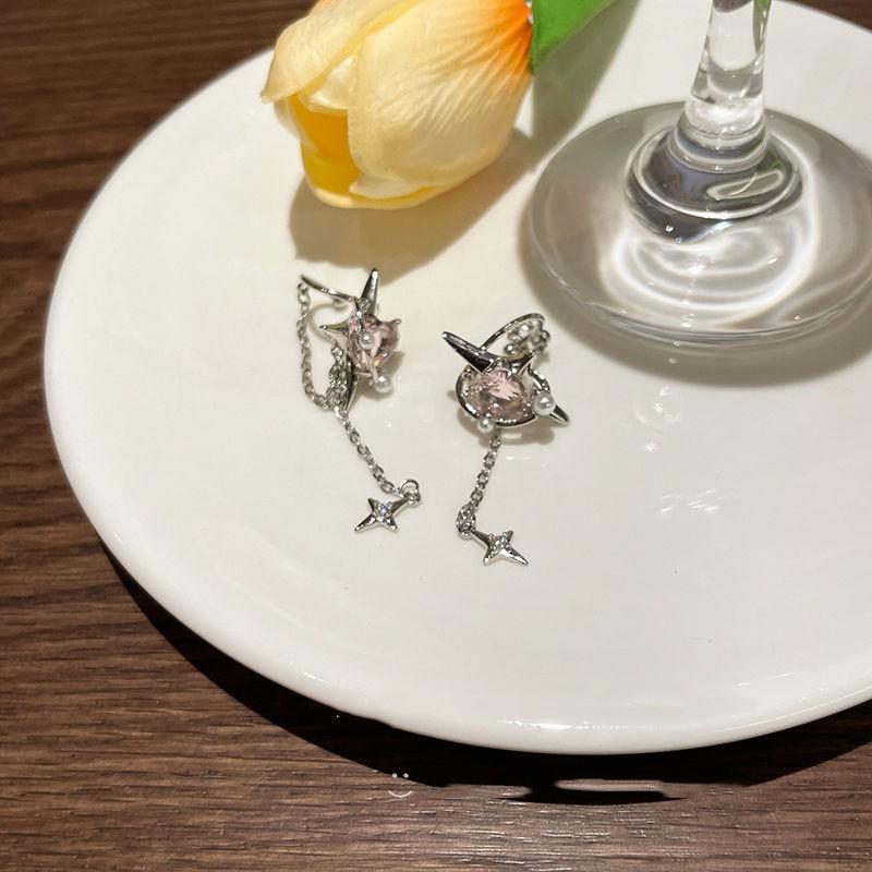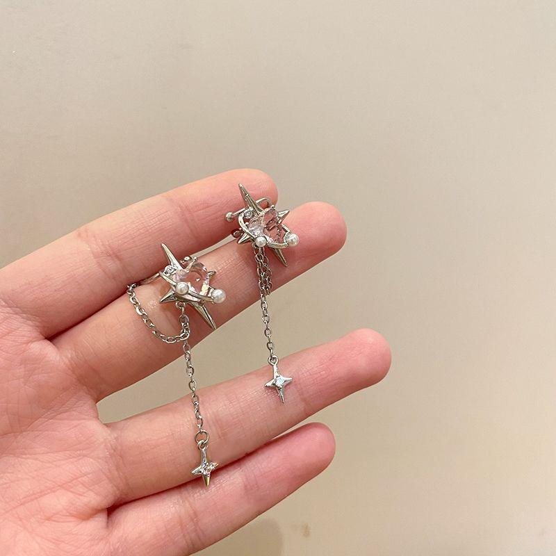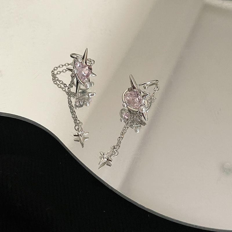 Корейская серьга-клипса с кисточкой в форме сердца и звезды из циркона — простой и стильный дизайн для женщин