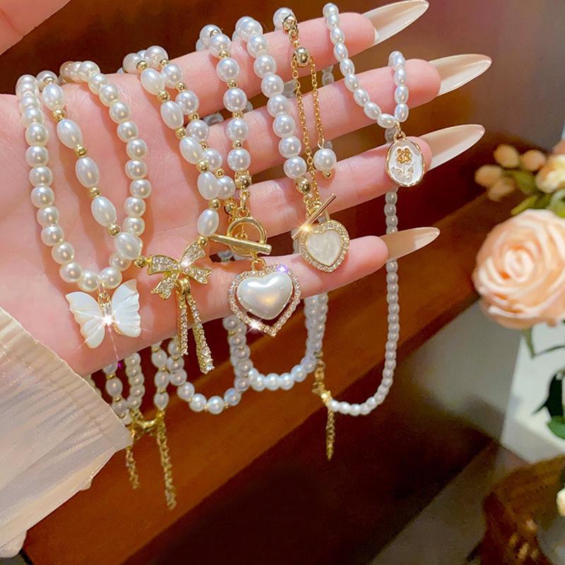 Роскошное корейское ожерелье из жемчуга Bucklo для женщин: Подвеска All-Match Love на ключицу