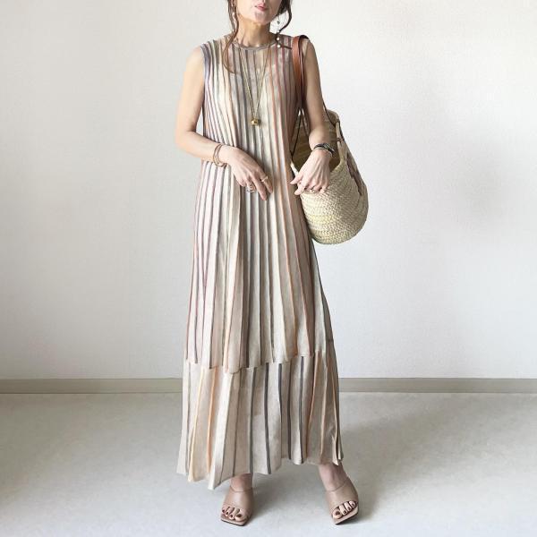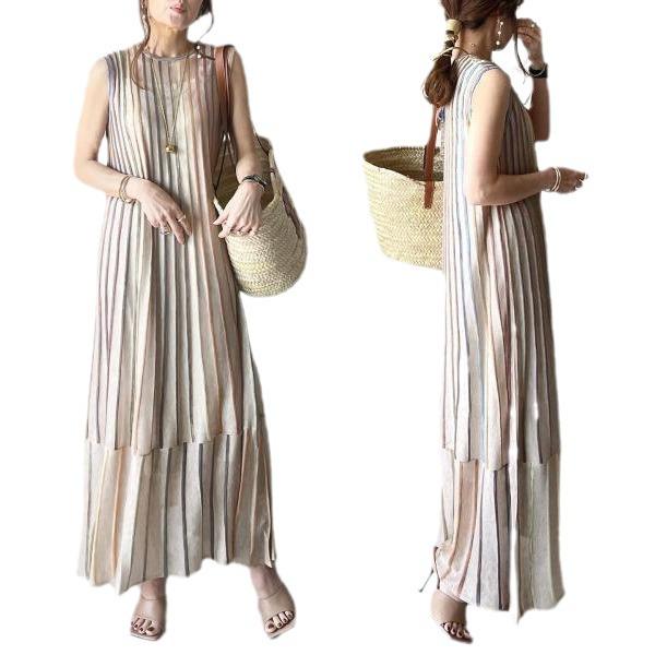 Летнее полосатое платье без рукавов из жаккардового трикотажа 2024