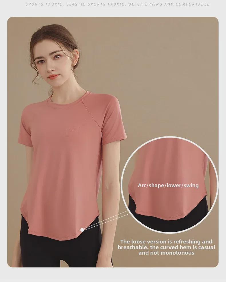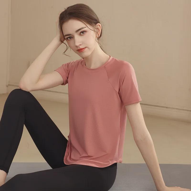 Высококачественные летние топы для йоги и бега для женщин: Быстросохнущая модель с короткими рукавами, свободного кроя и сетчатой спинкой.