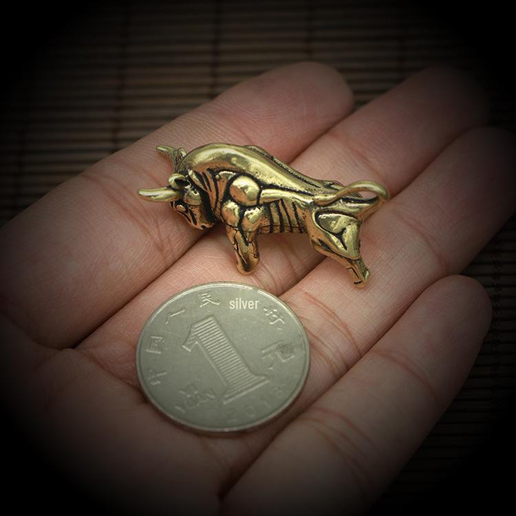 Брелок-подвеска в виде быка из латуни ручной работы и мини-украшение для рабочего стола