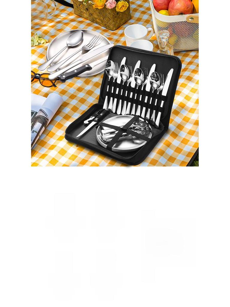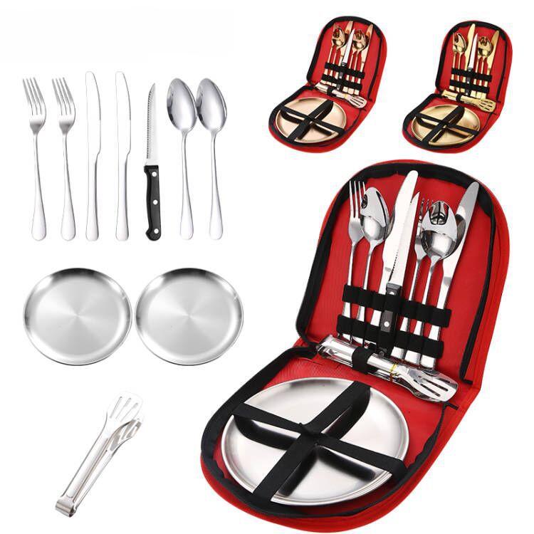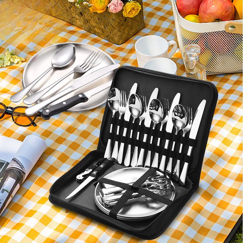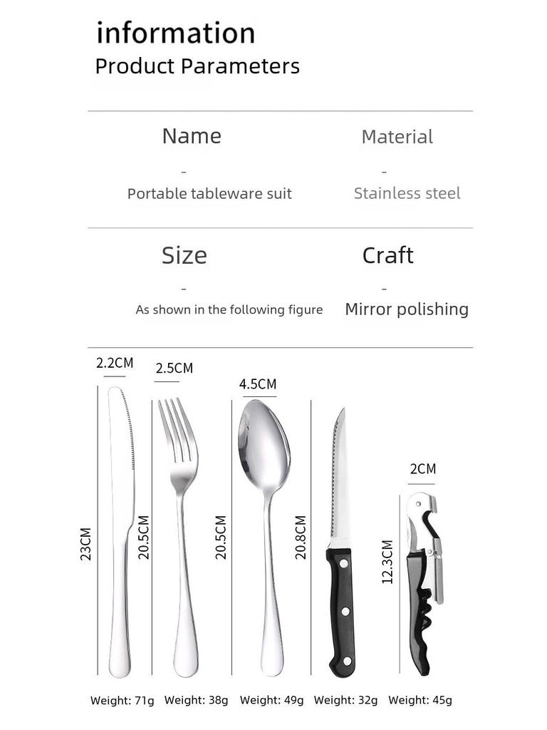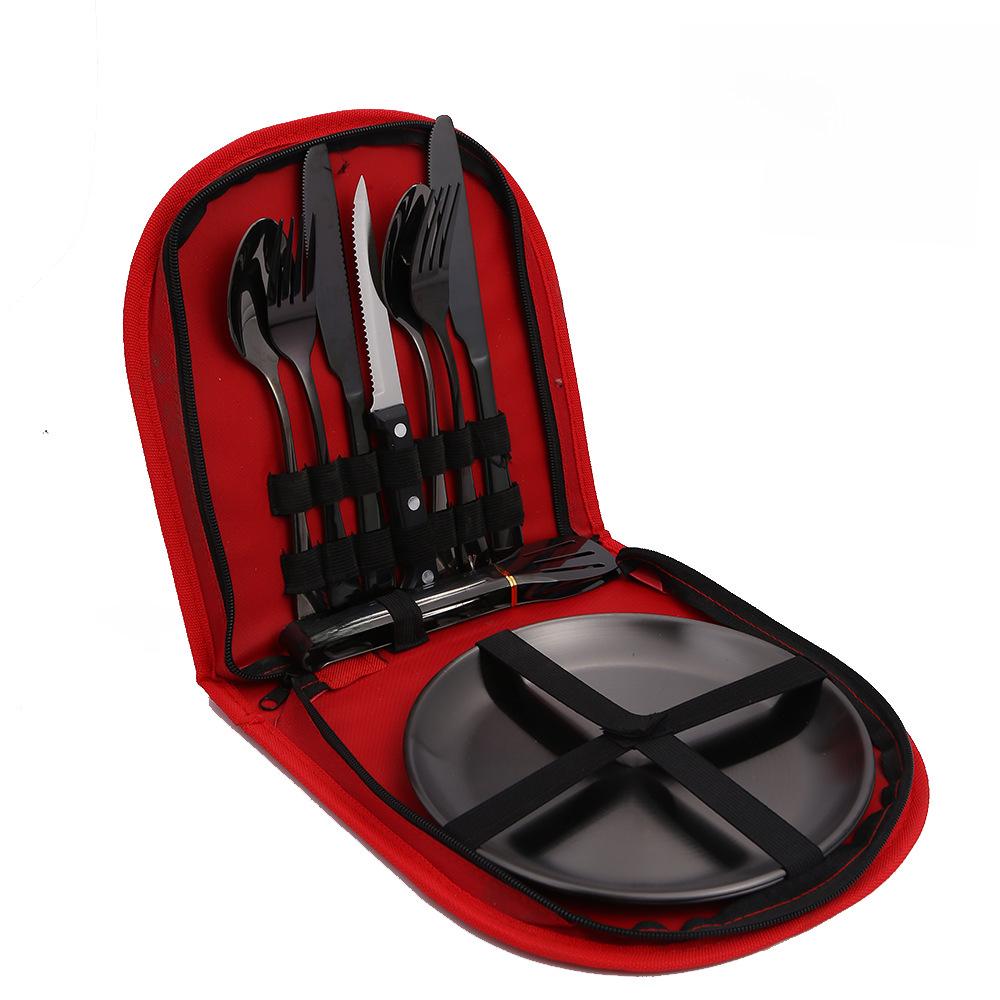 Набор столовых приборов из нержавеющей стали для использования на открытом воздухе с ножом, вилкой, ложкой и тканевым мешком