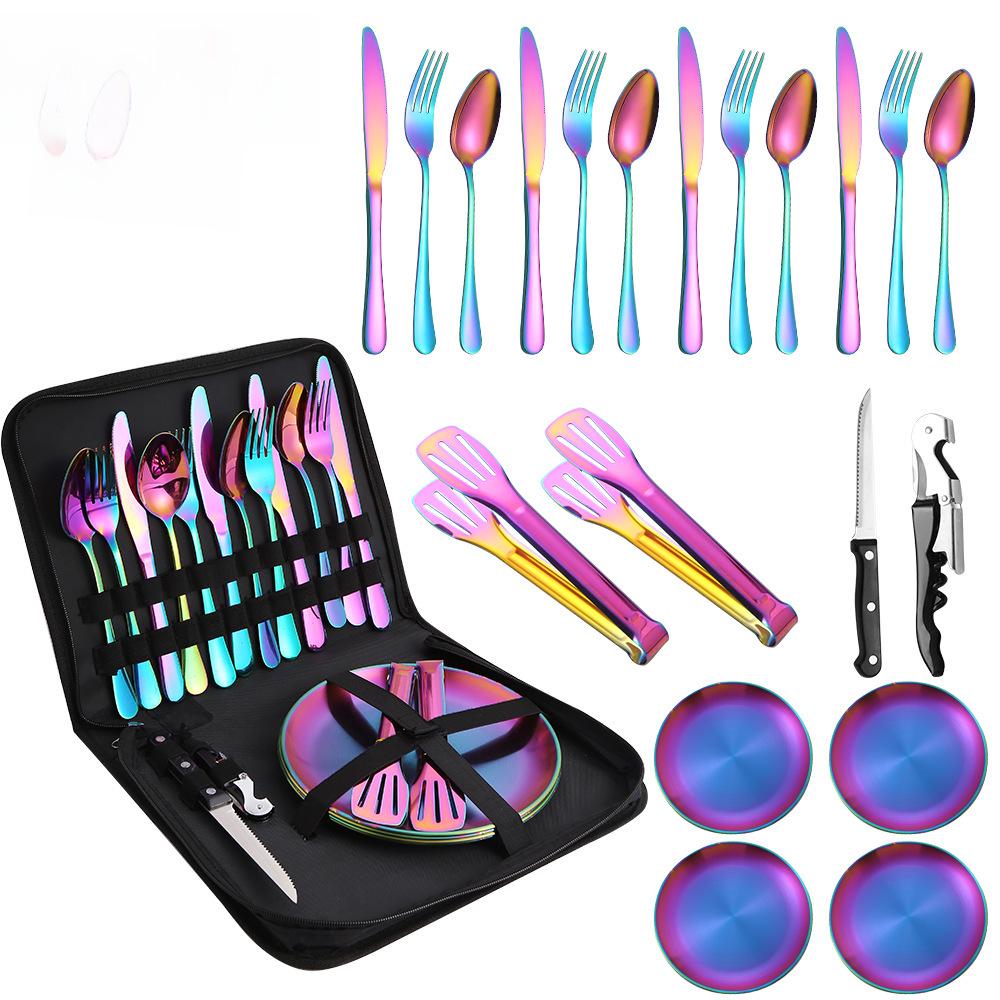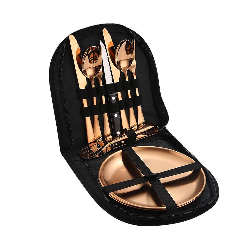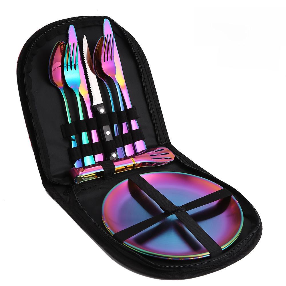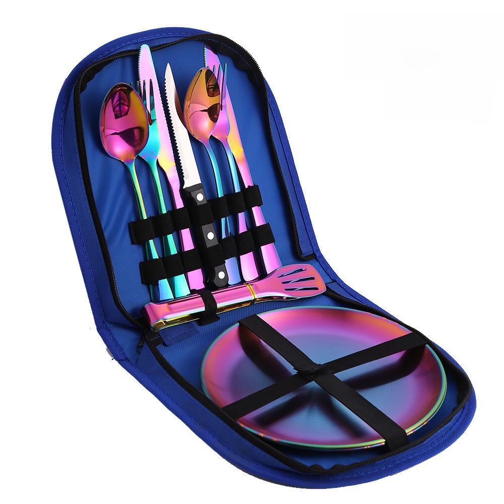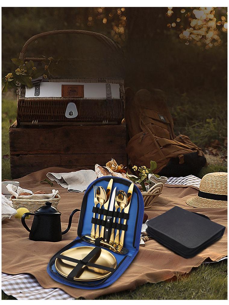 Набор столовых приборов из нержавеющей стали для использования на открытом воздухе с ножом, вилкой, ложкой и тканевым мешком