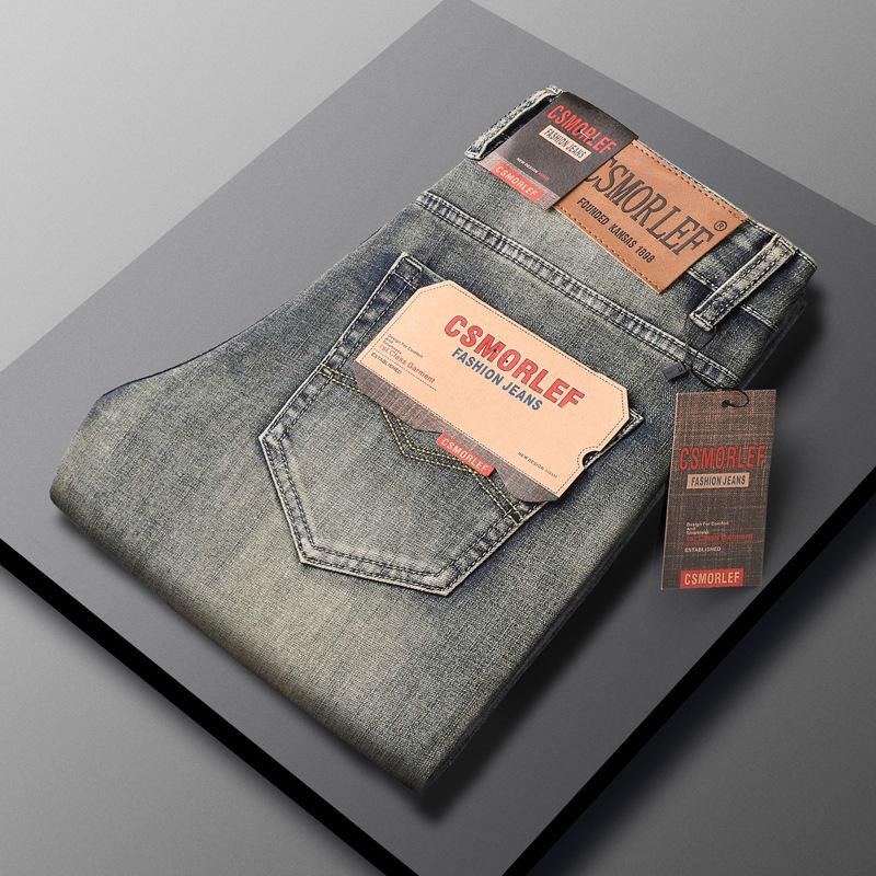 Эти мужские узкие прямые джинсы в стиле ретро являются частью весенне-осенней коллекции и предлагают стильную и удобную посадку.. Эти джинсы, изготовленные из высококачественного хлопка, имеют эластичную конструкцию для удобства и гибкости в течение всего дня.. Уникальный материал в ковбойском стиле придает им классический и прочный вид, идеально подходящий для повседневных прогулок или вечернего выхода.. Идеально подходит для тех, кто ценит сочетание современного комфорта и вневременного стиля.