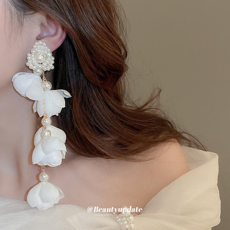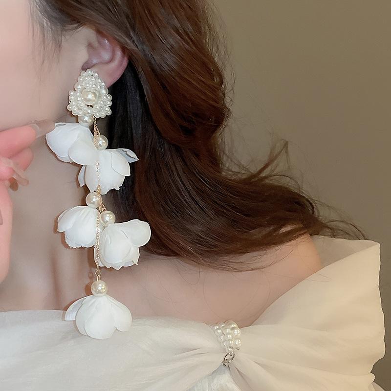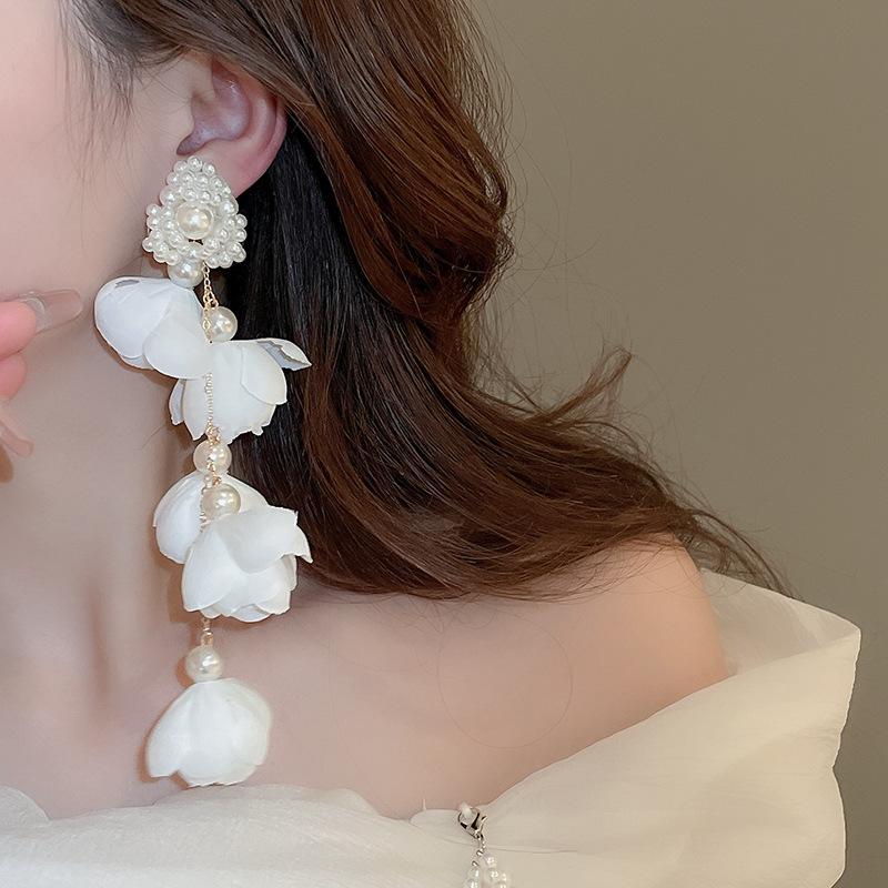 Серебряные игольчатые супер феи длинные серьги-кисточки с жемчугом - изысканное модное заявление для женщин