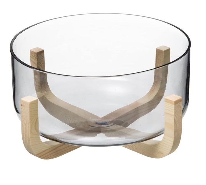 Saladier - Design - Verre - D 24 cm - Support en Paulownia - Compatible lave-vaisselle