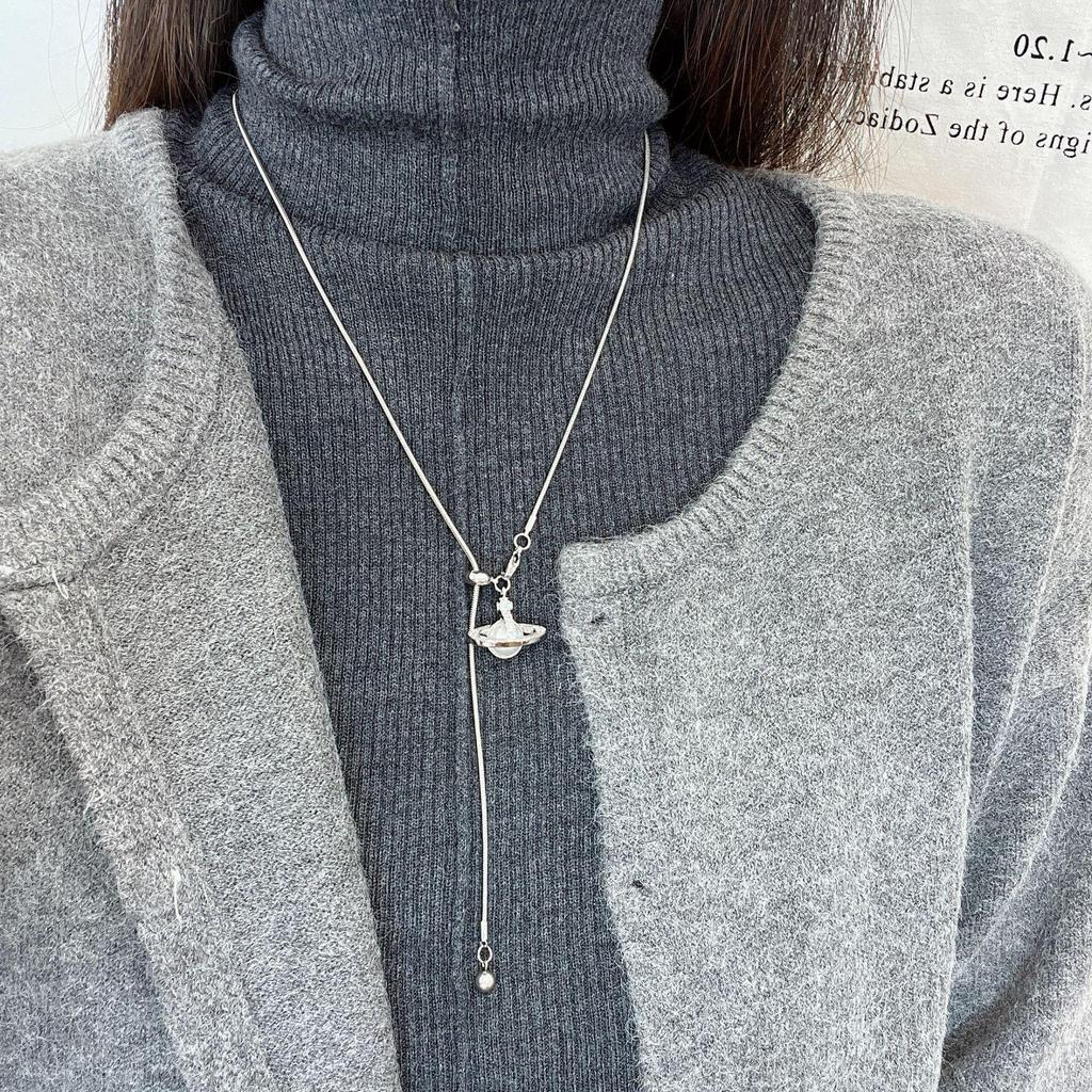 Женское ожерелье с подвеской-кисточкой Saturn Pearl 2024 года – регулируемая высококачественная цепочка для свитера на осень/зиму