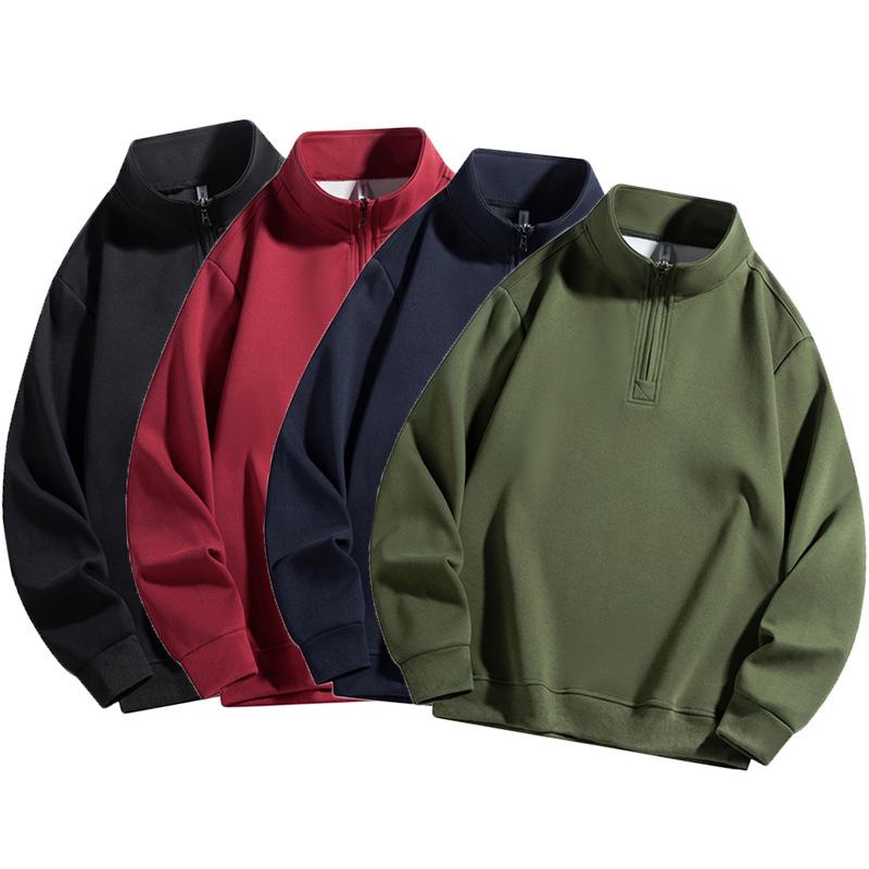 Мужской свитер в американском стиле с полумолнией и воротником-стойкой - модная толстовка из бархата весна/осень