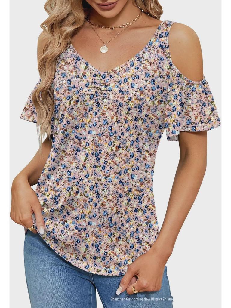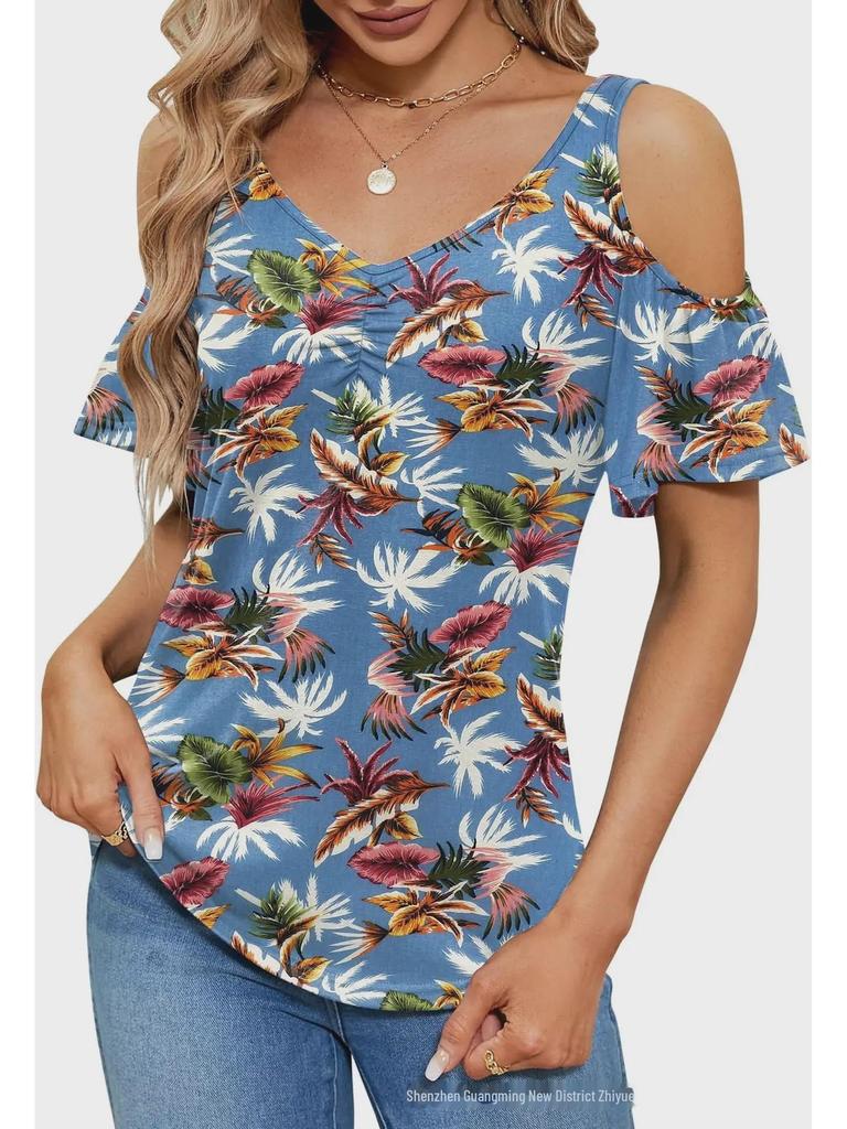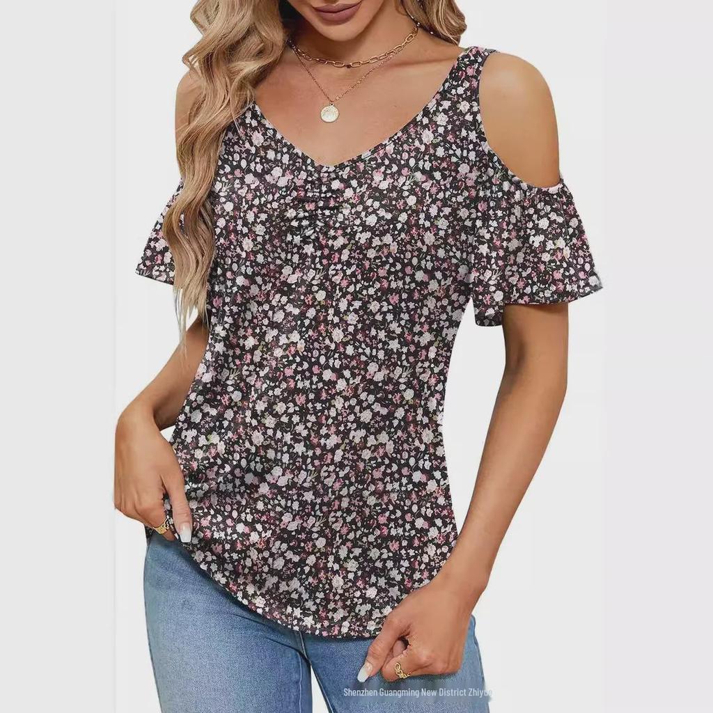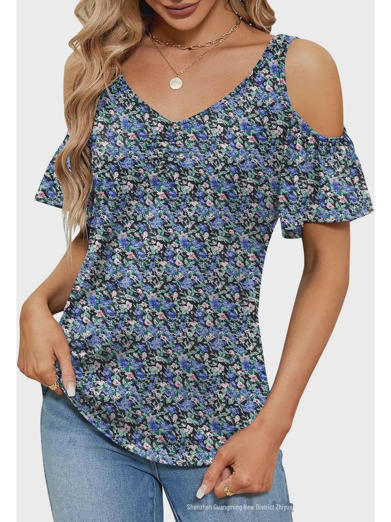 Создайте непринужденный летний стиль с этим женским топом с открытыми плечами, шикарным V-образным вырезом и ярким цветочным узором.. Эта свободная футболка из легкого полиэстера обеспечивает комфорт и воздухопроницаемость в теплые дни.. Короткие рукава добавляют игривости, что делает его идеальным для повседневных прогулок или непринужденных встреч.. Этот топ, созданный для тех, кто любит сочетание моды и комфорта, станет идеальным выбором для дополнения вашего летнего гардероба.