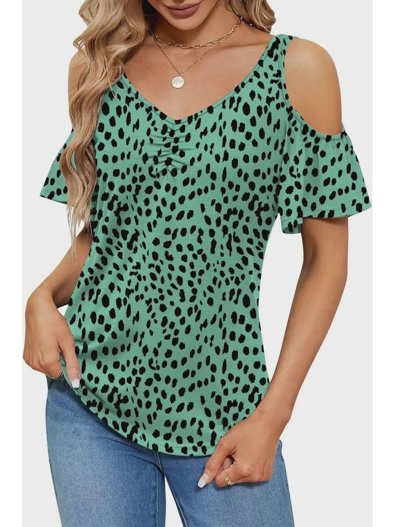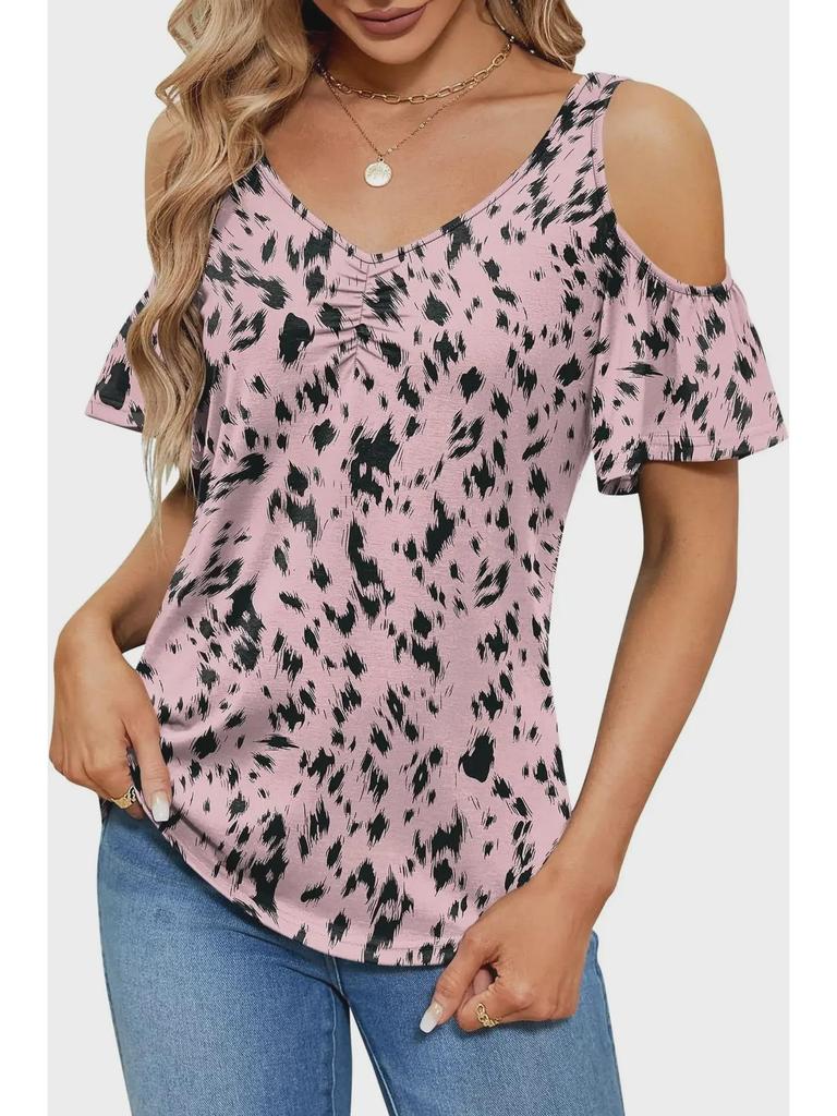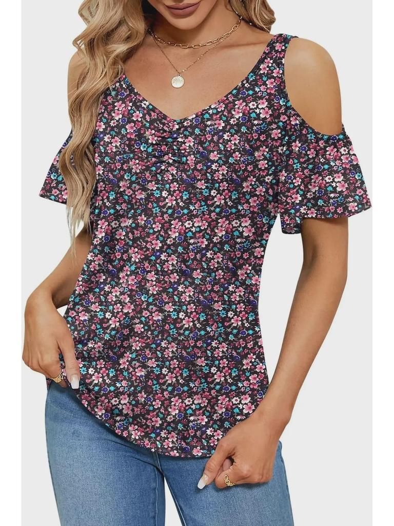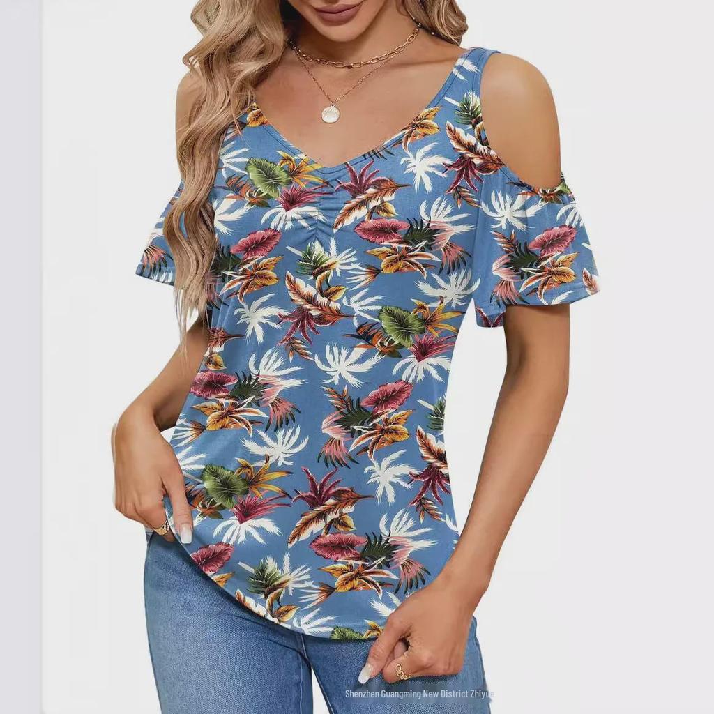 Создайте непринужденный летний стиль с этим женским топом с открытыми плечами, шикарным V-образным вырезом и ярким цветочным узором.. Эта свободная футболка из легкого полиэстера обеспечивает комфорт и воздухопроницаемость в теплые дни.. Короткие рукава добавляют игривости, что делает его идеальным для повседневных прогулок или непринужденных встреч.. Этот топ, созданный для тех, кто любит сочетание моды и комфорта, станет идеальным выбором для дополнения вашего летнего гардероба.