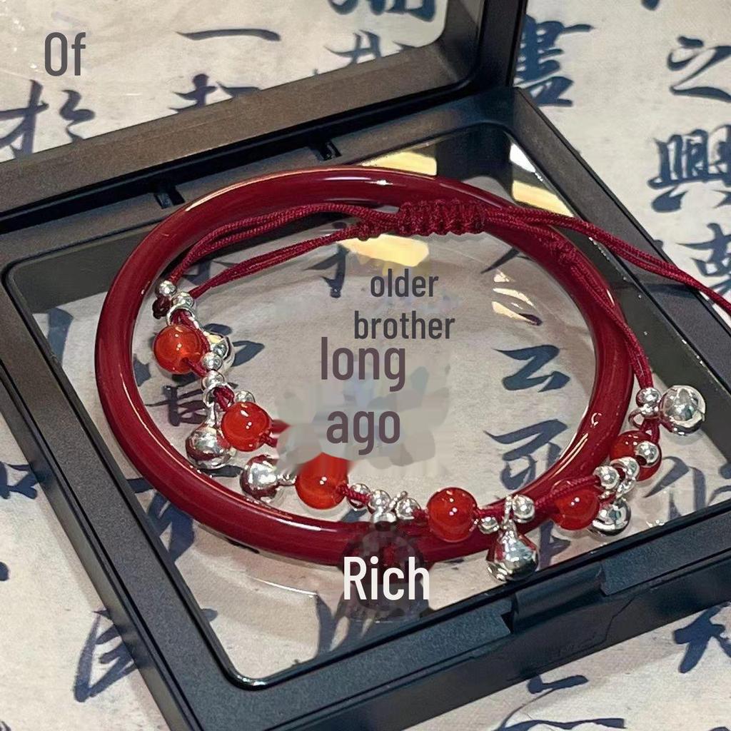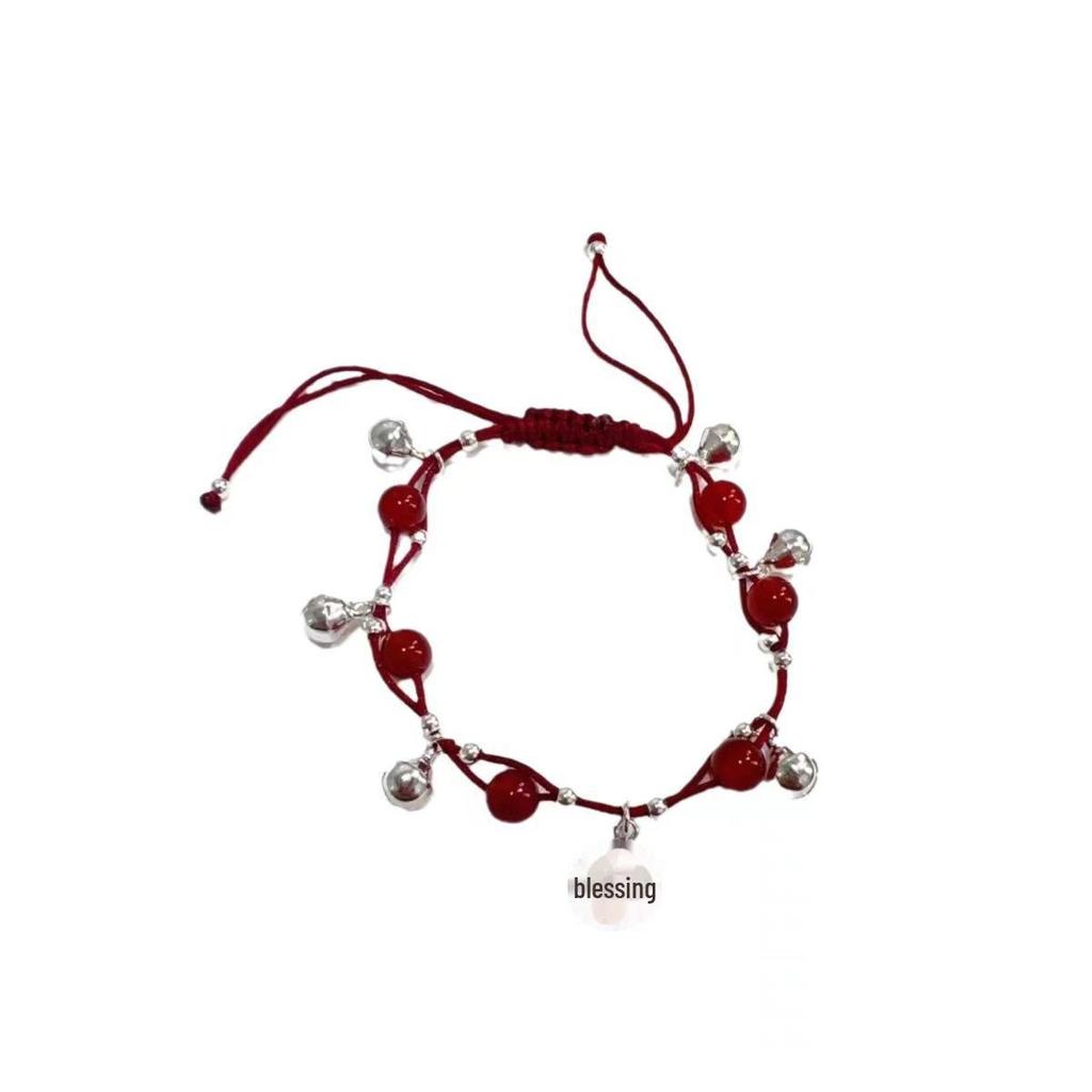 Браслет с красными веревками и колокольчиками в стиле зодиака Мяо для девочек - ручная работа, уникальный китайский дизайн Фу
