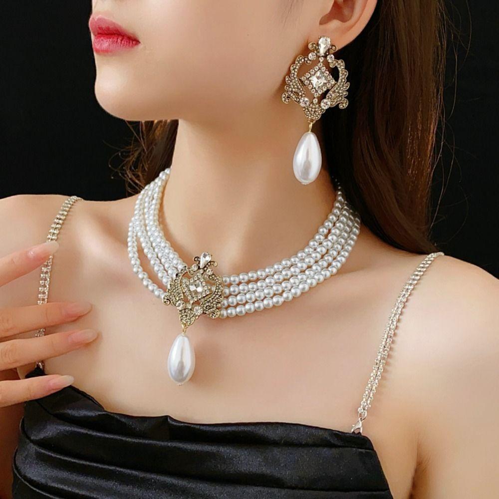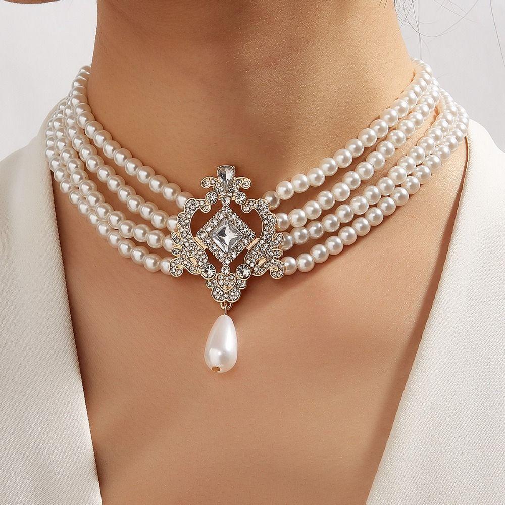 Колье-чокер со стразами в форме капли Элегантное роскошное ожерелье с жемчугом в форме капли воды Женское вечернее ожерелье