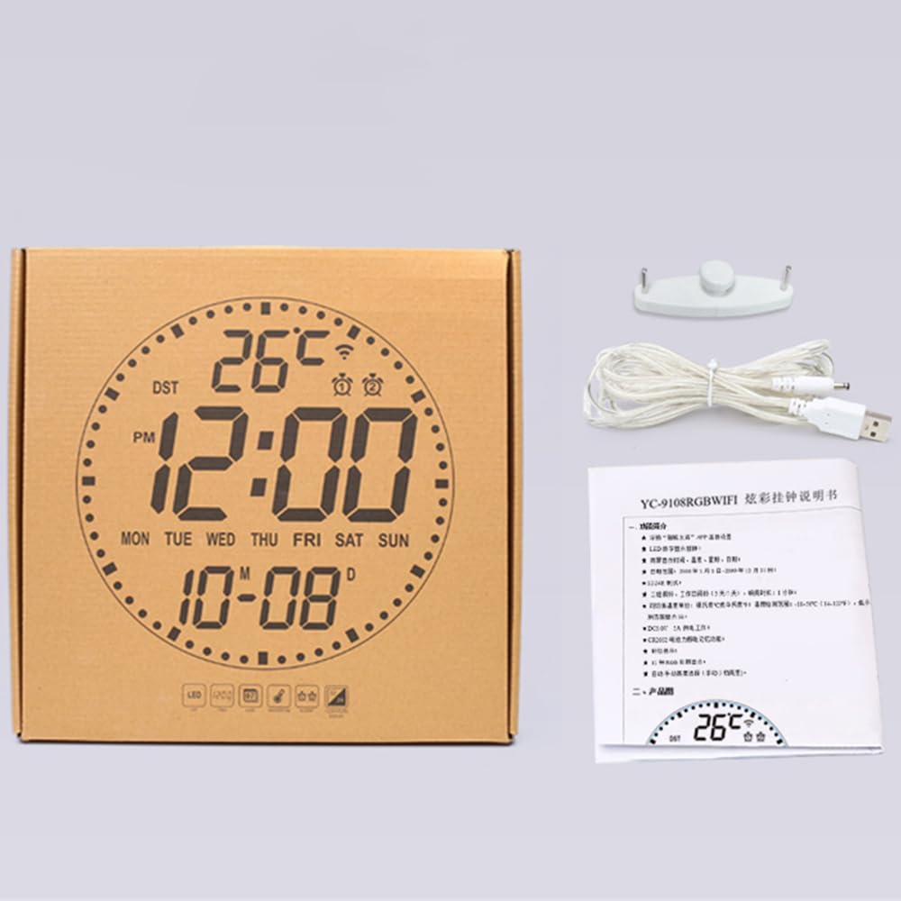 HZDHCLH Часы настенные цифровые часы с большим экраном цифровые часы с пультом дистанционного управления 12 дюймов светодиодные настенные часы RGB12 цвета температура влажность для дома спальня