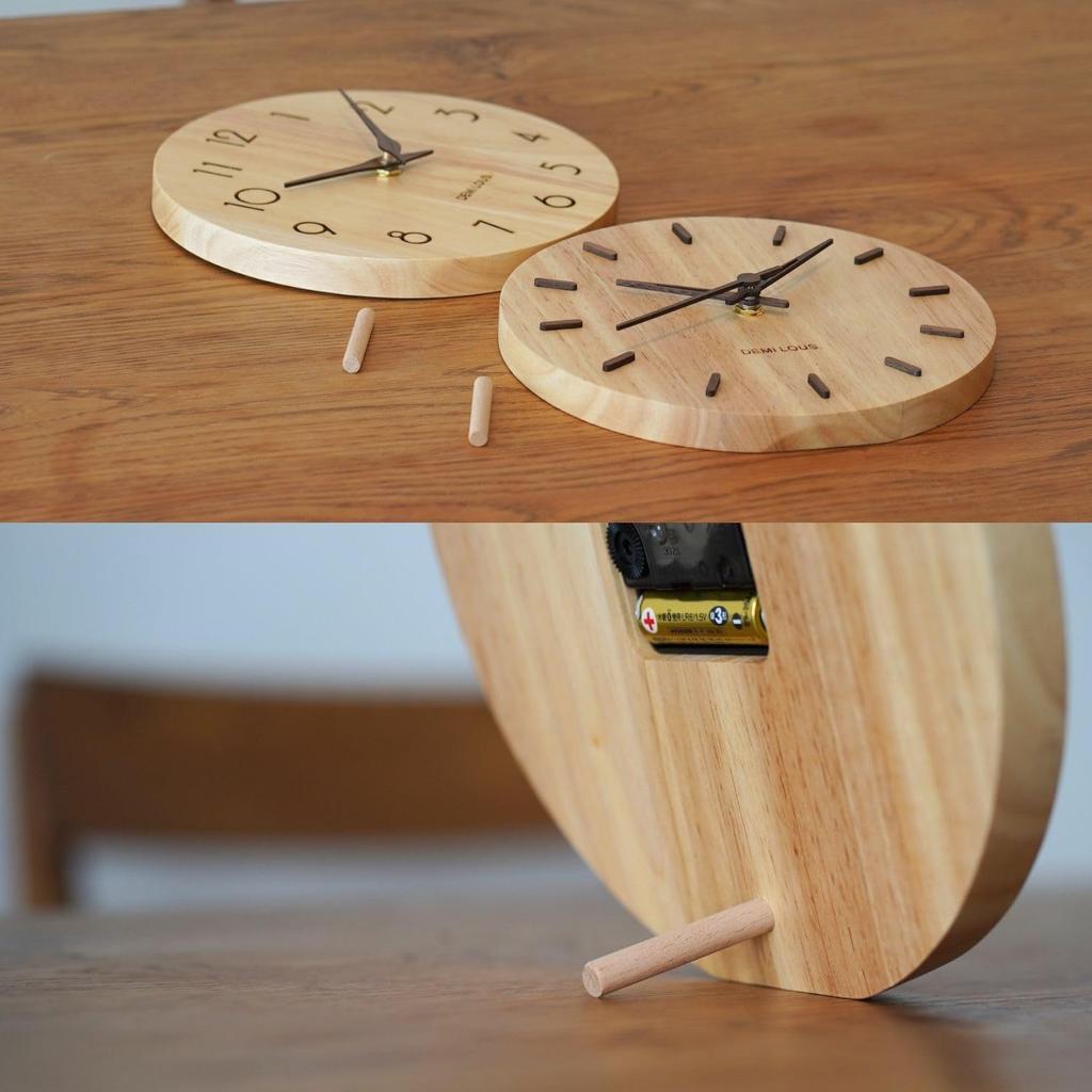 Подвесные часы 22 см Деревянные настенные часы Настольные часы из цельного дерева Интерьер Тихий скандинавский натуральный подлинный стрелка "DEMI LOUS. Продукт" (Вторая шкала)