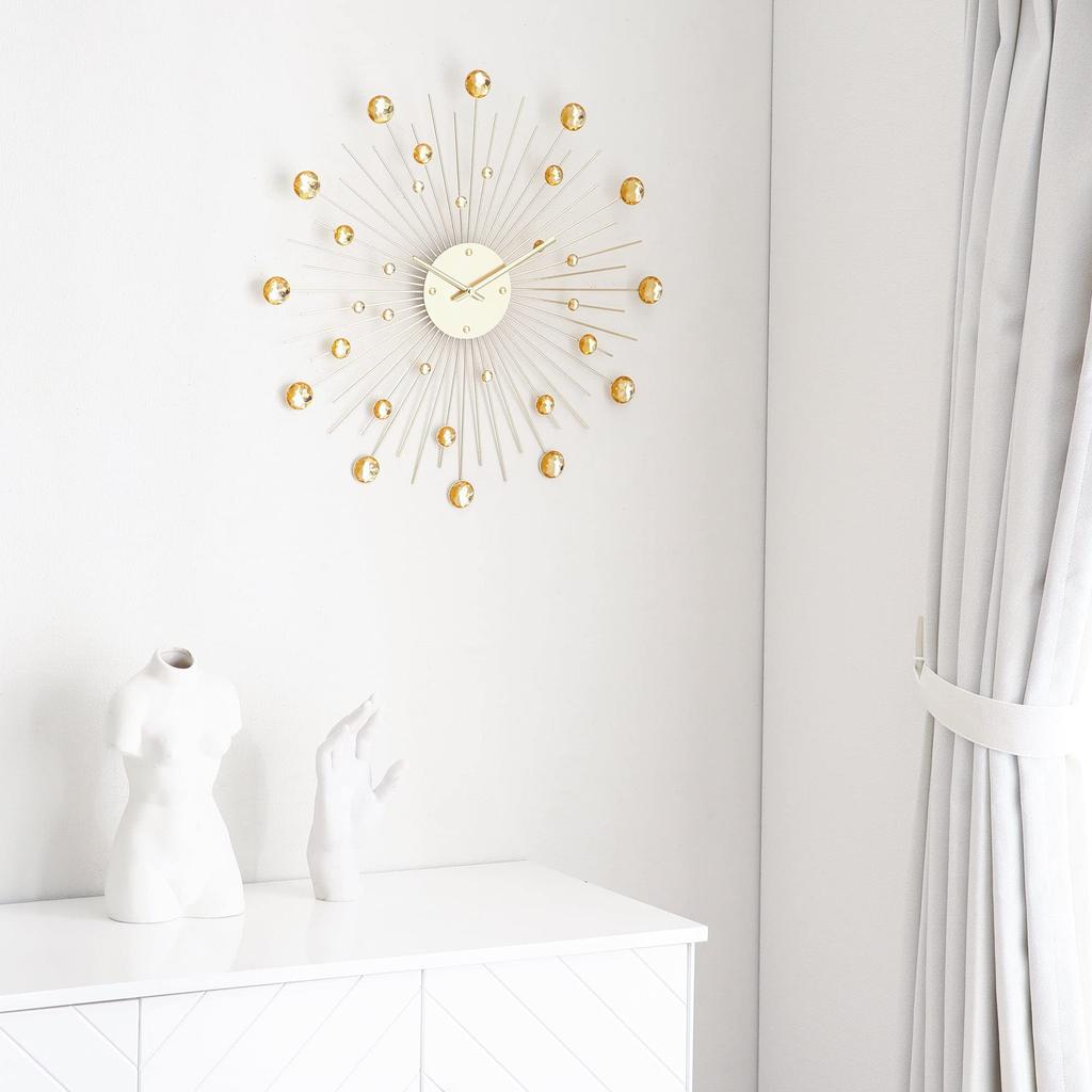 Роскошные настенные часы со сверкающей бижутерией. Форма, нарисованная блестящей и изящной палочкой, похожа на предмет. Это главный предмет, который полностью изменит атмосферу вашей комнаты.