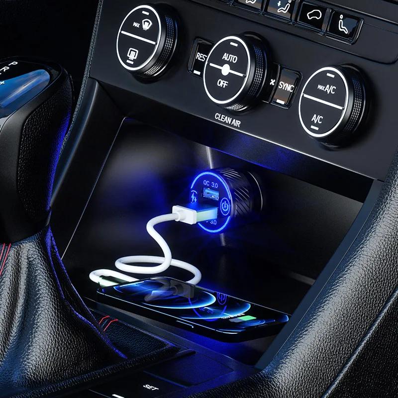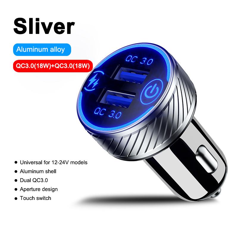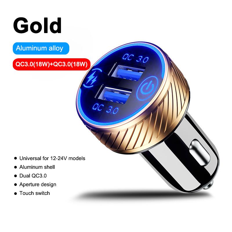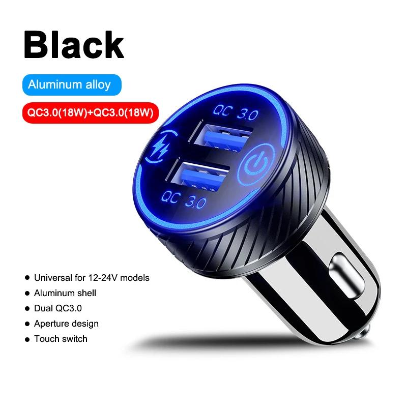 Автомобильное зарядное устройство USB мощностью 36 Вт, двойной порт USB QC 3.0, адаптер для быстрой зарядки со светодиодным сенсорным переключателем для RV ATV 12 В-24 В