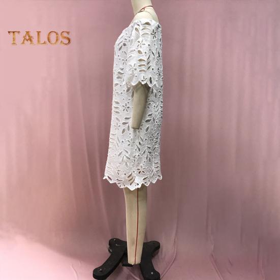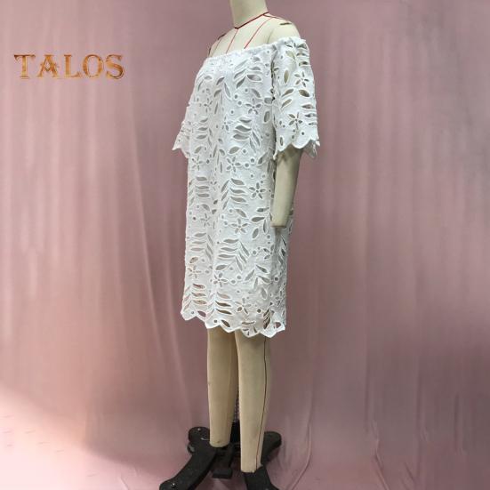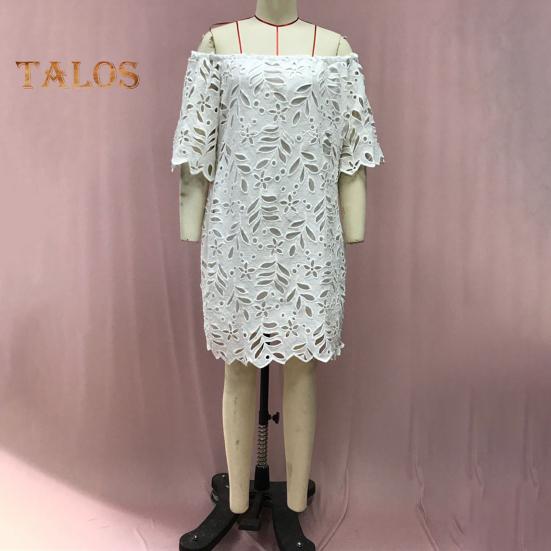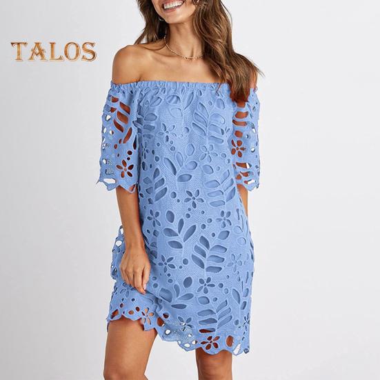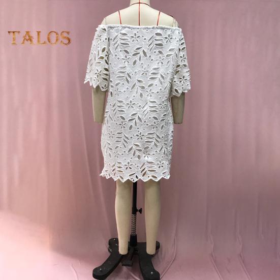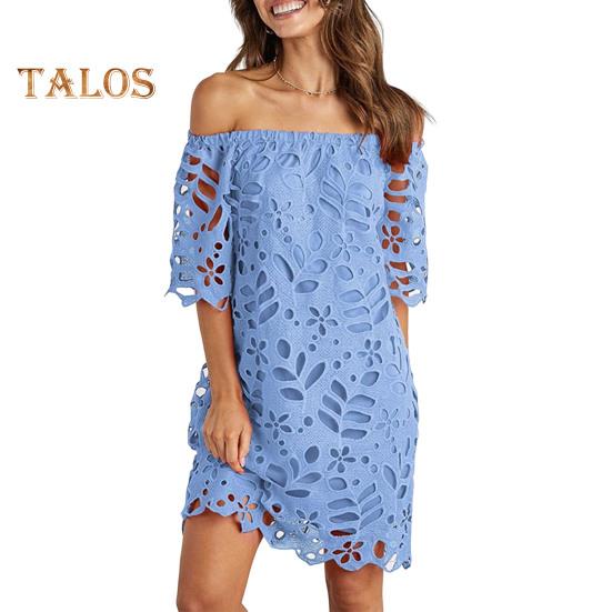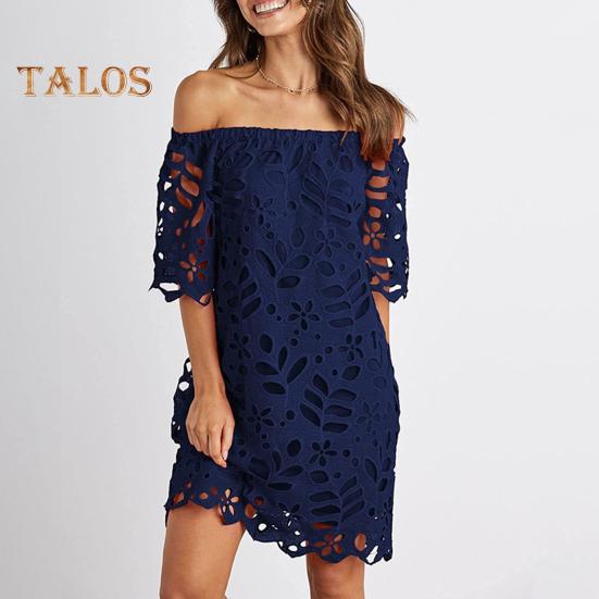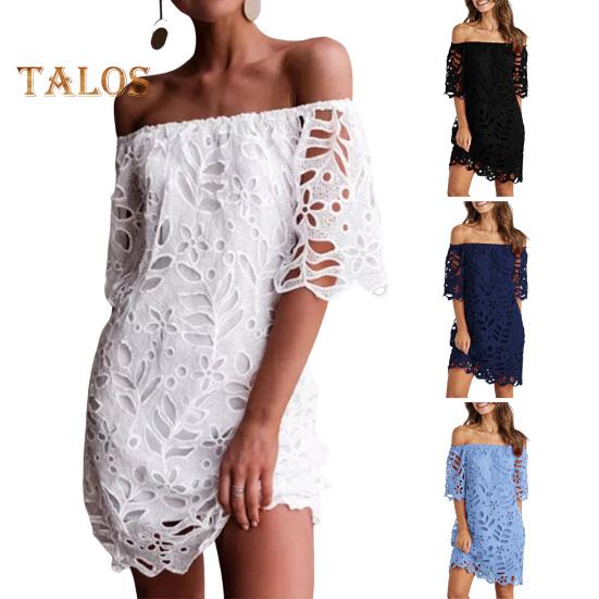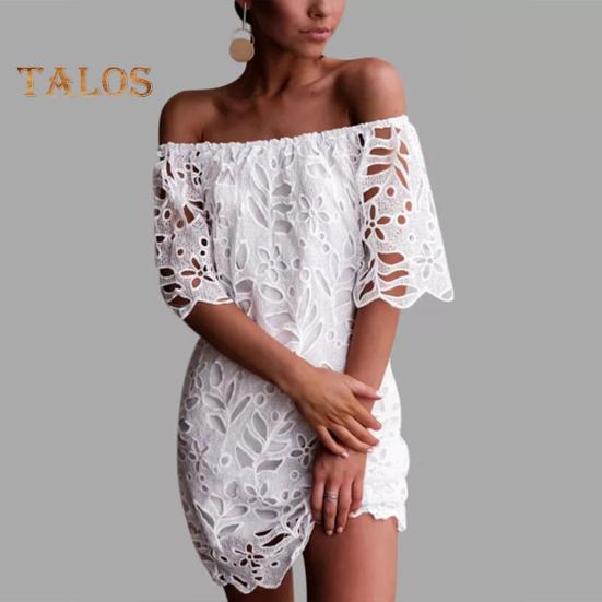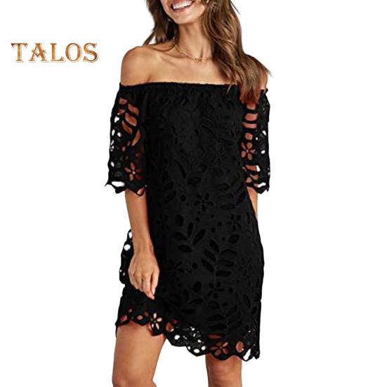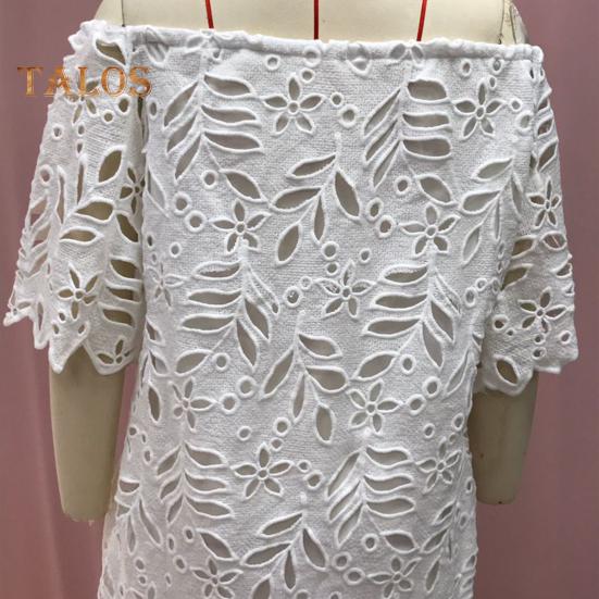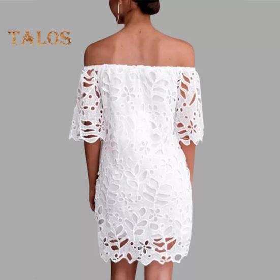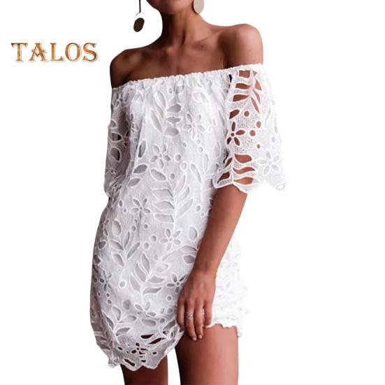 Женское мини-платье с открытыми плечами и цветочным кружевом, летнее расклешенное свободное короткое платье с короткими рукавами для пляжных вечеринок в ночных клубах