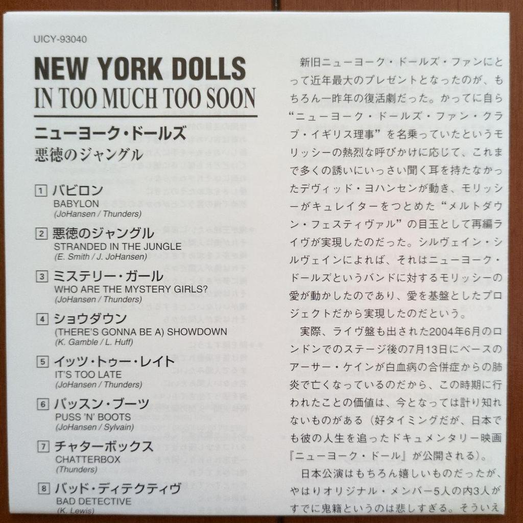 [ИСПОЛЬЗОВАННЫЙ] Бонус DU obi бумажная обложка New York Dolls / Слишком много
