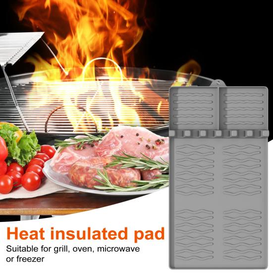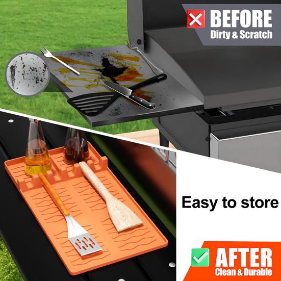 Силиконовый коврик для гриля, термостойкий, многосекционный органайзер для инструментов для барбекю, нескользящая боковая полка из пищевого материала с поддоном для сбора жира, можно мыть в посудомоечной машине