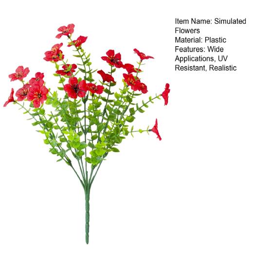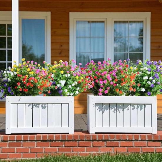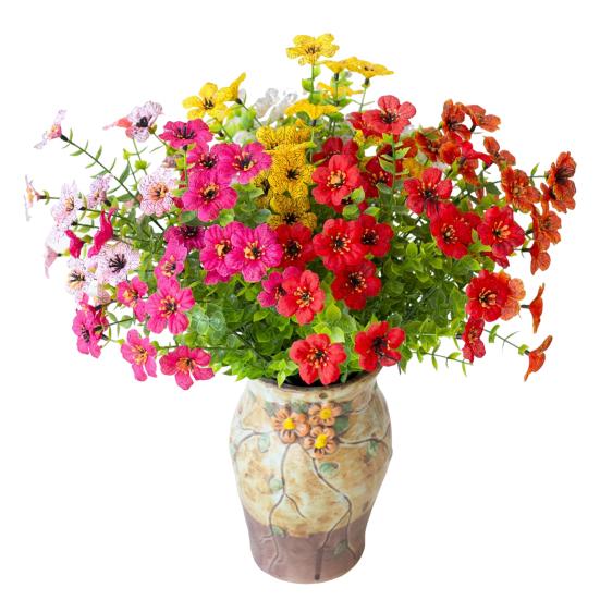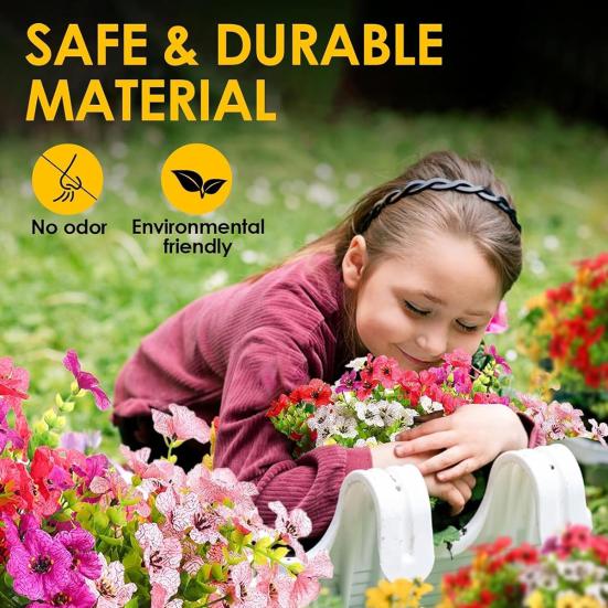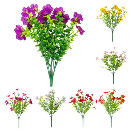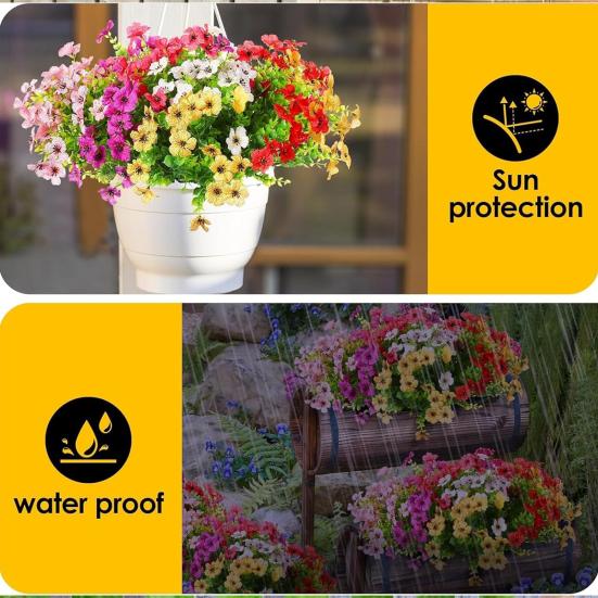 Украсьте свое открытое пространство этими потрясающими искусственными цветами. Эти искусственные растения, изготовленные из высококачественных материалов, устойчивы к погодным условиям и ультрафиолетовому излучению и идеально подходят для людей с плотным графиком.. Не нуждается в солнечном свете, поливе или обрезке! Поддерживайте их яркость, регулярно чистя.. Эти реалистичные уличные пластиковые цветы прекрасно имитируют дикие цветы, добавляя нотку стиля вашему дому, саду, двору, террасе или балкону.. Их аутентичный внешний вид делает их универсальными для использования как в помещении, так и на открытом воздухе.