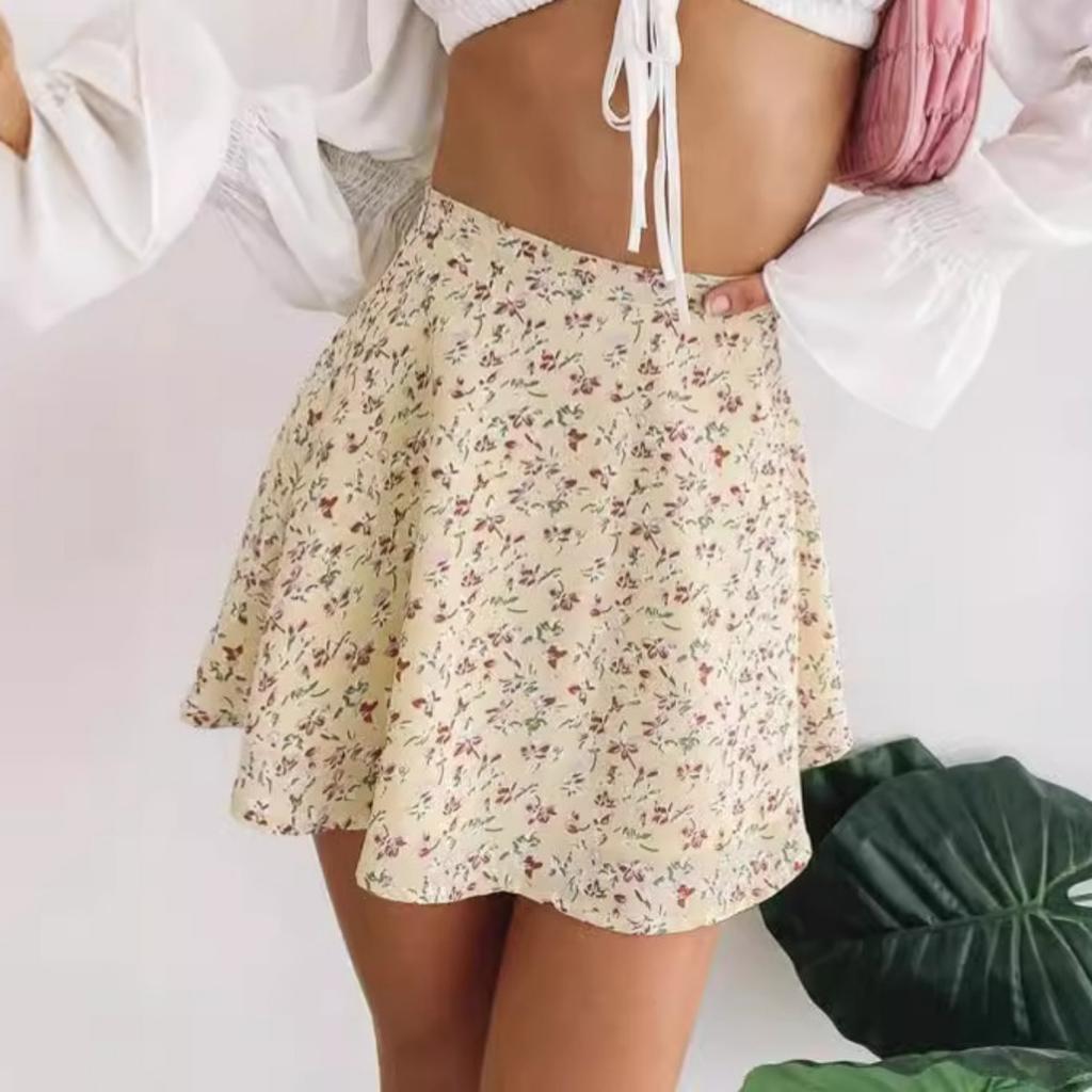 Женская юбка-бюстье из шифона с цветочным принтом, свежая и милая короткая юбка с невидимой молнией
