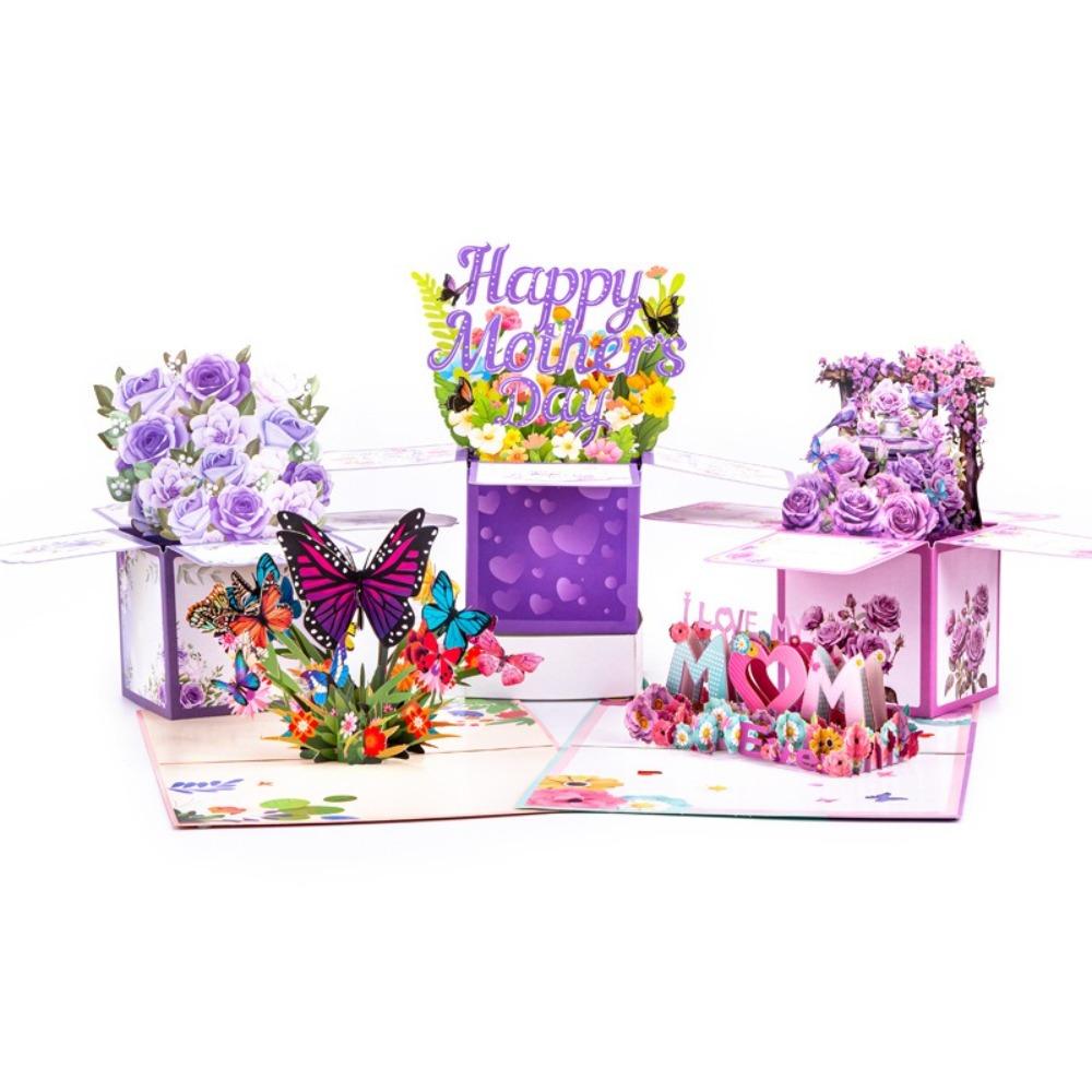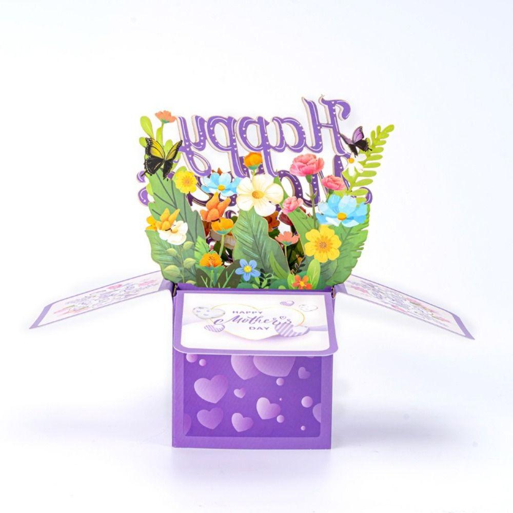 Бумажная 3D Открытка-Букет Бабочка Цветок Бумажные Цветы Почтовая Открытка Мама Жена