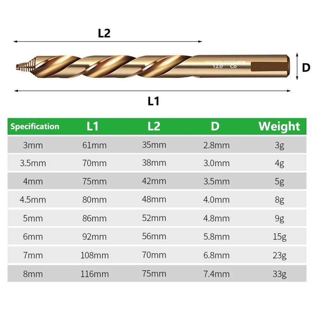2 шт. 3 мм-8 мм спиральное сверло HSS спиральные прямые хвостовики сверла для открывания отверстий по металлу ступенчатое сверло кобальтовое сверло сверла по металлу
