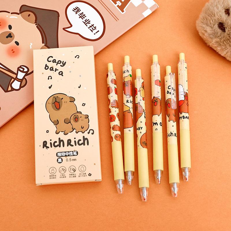 6Pcs Kawaii Cute Capybara Gel Pens Quick-Drying Writing Smooth Pen Cartoon Pressing Neutral Pen Student Stationery Gifts