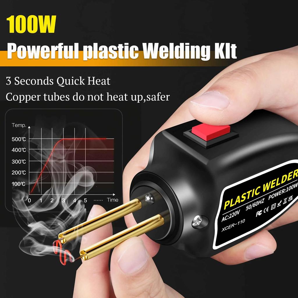 1 Набор 100 Вт для ремонта пластика, для бампера автомобиля, включает сварочный аппарат, инструмент для сварки гвоздями и 200 бесплатных гвоздей, прочный и эффективный