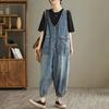 Женские комбинезоны Весенние однотонные высококачественные джинсы Винтажные повседневные свободные многокарманные комбинезоны Джинсовые брюки