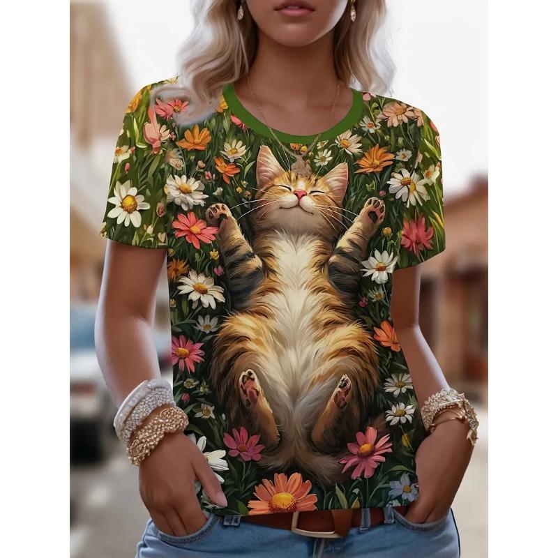 Летняя женская футболка с круглым вырезом, модная уличная футболка с коротким рукавом, 3D-принт с изображением кота, женская одежда больших размеров — купить товар онлайн с бесплатной доставкой по всему миру!