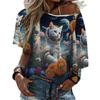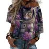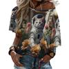 Летняя женская футболка с круглым вырезом, модная уличная футболка с коротким рукавом, 3D-принт с изображением кота, женская одежда больших размеров