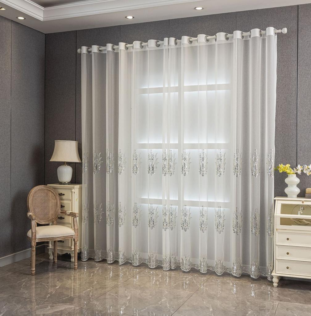 Вышивка Белый Прозрачный Высококачественный Легкий Роскошный Шторы Оконный Экран Спальня Гостиная Эркер Готовые Шторы