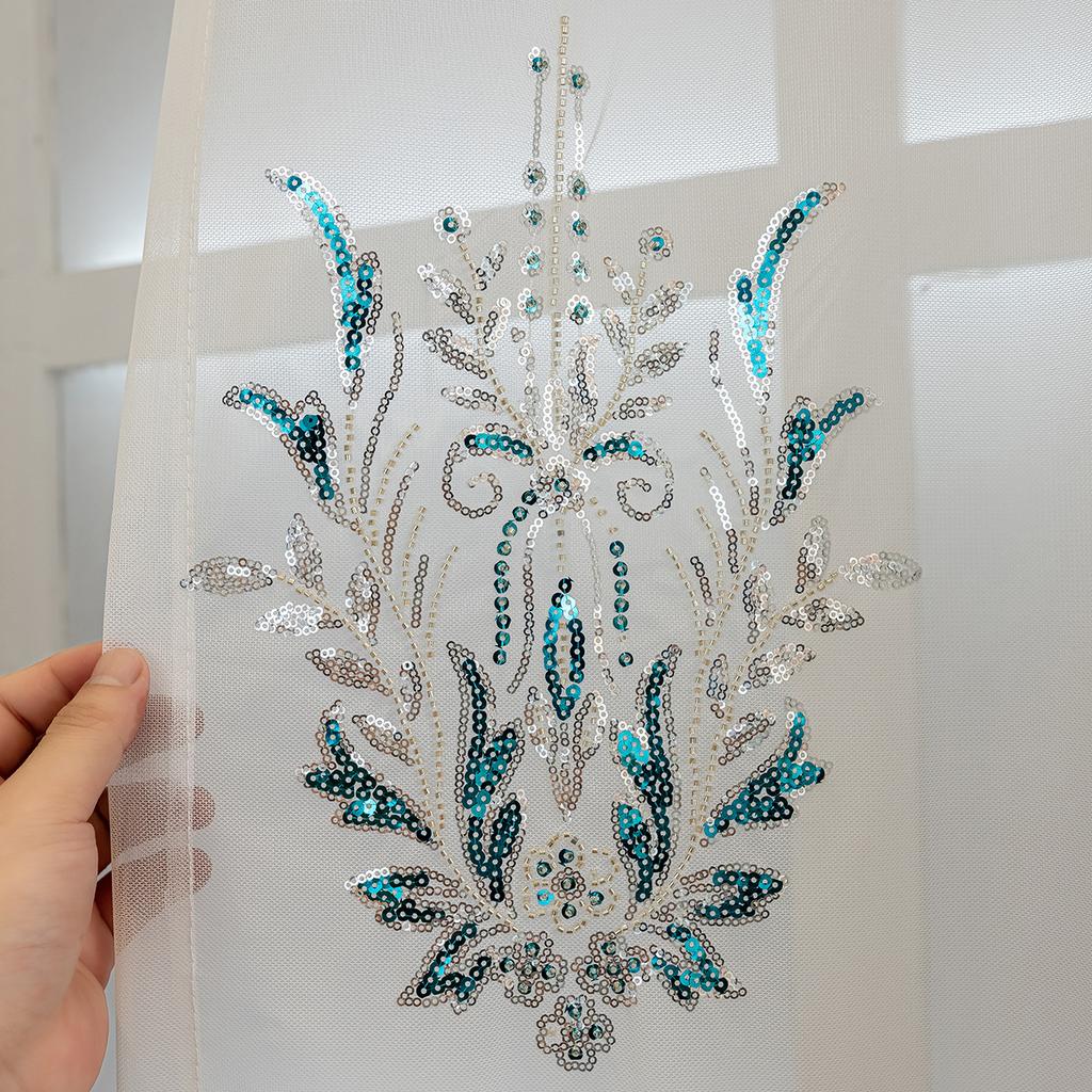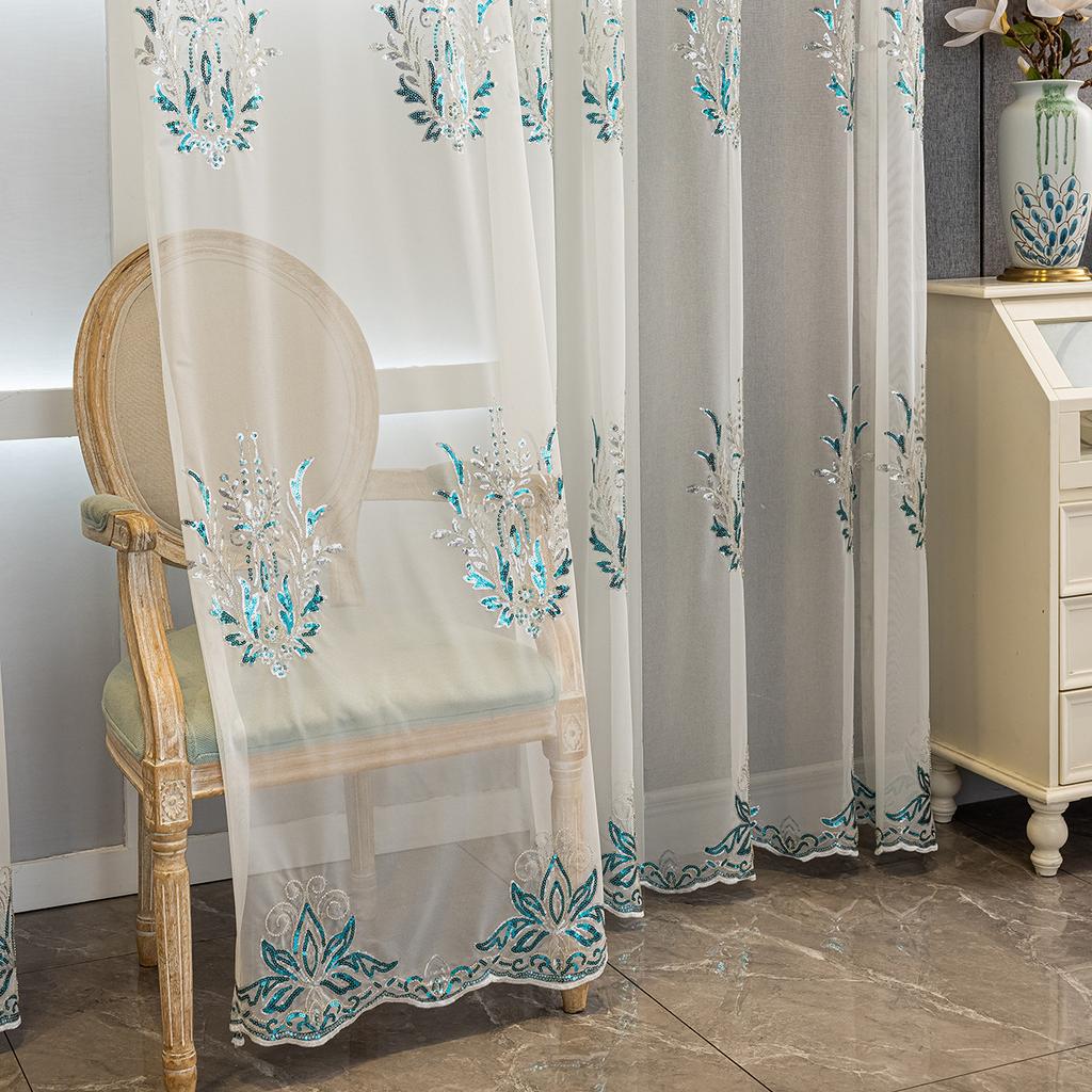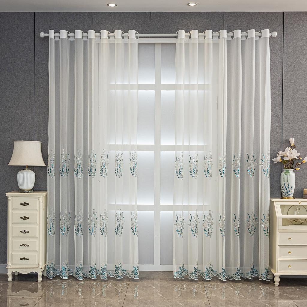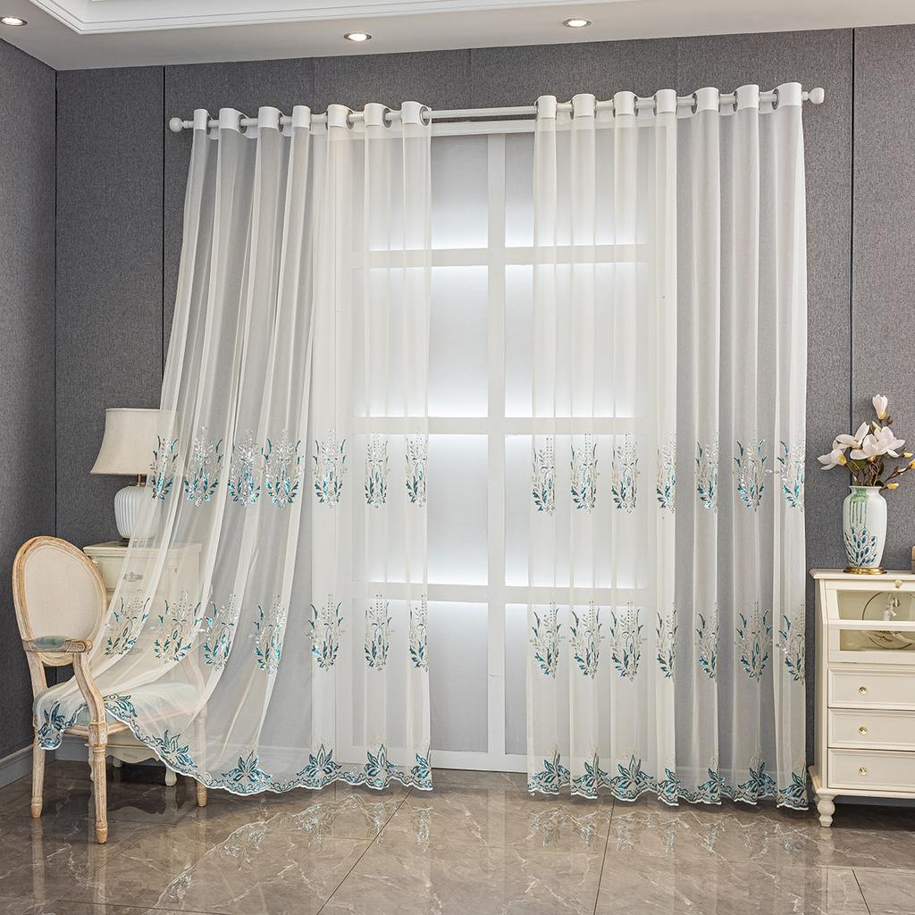 Вышивка Синий Прозрачный Высококачественный Легкий Роскошный Шторы Оконный Экран Спальня Гостиная Эркер Готовые Шторы