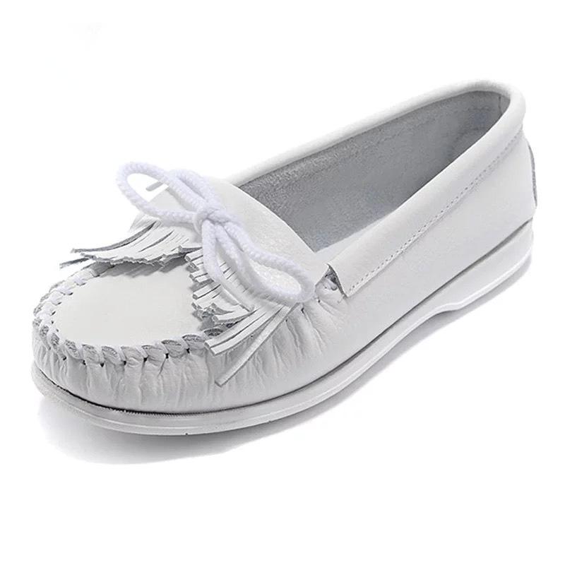 2024 Весна и Осень Туфли Doudou на мягкой подошве женские однопедальные повседневные туфли для беременных с бахромой женские студенческие белые туфли
