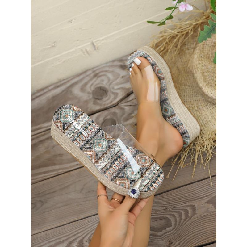 Маффин Уличная одежда Прозрачный с Летние сандалии Тапочки Склон с толстым дном из пеньковой веревки Одно слово Драг Женский