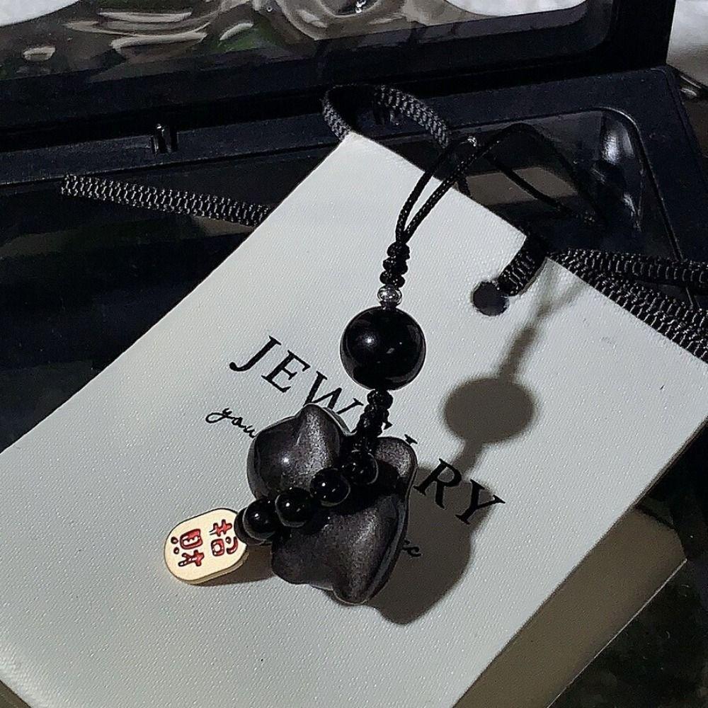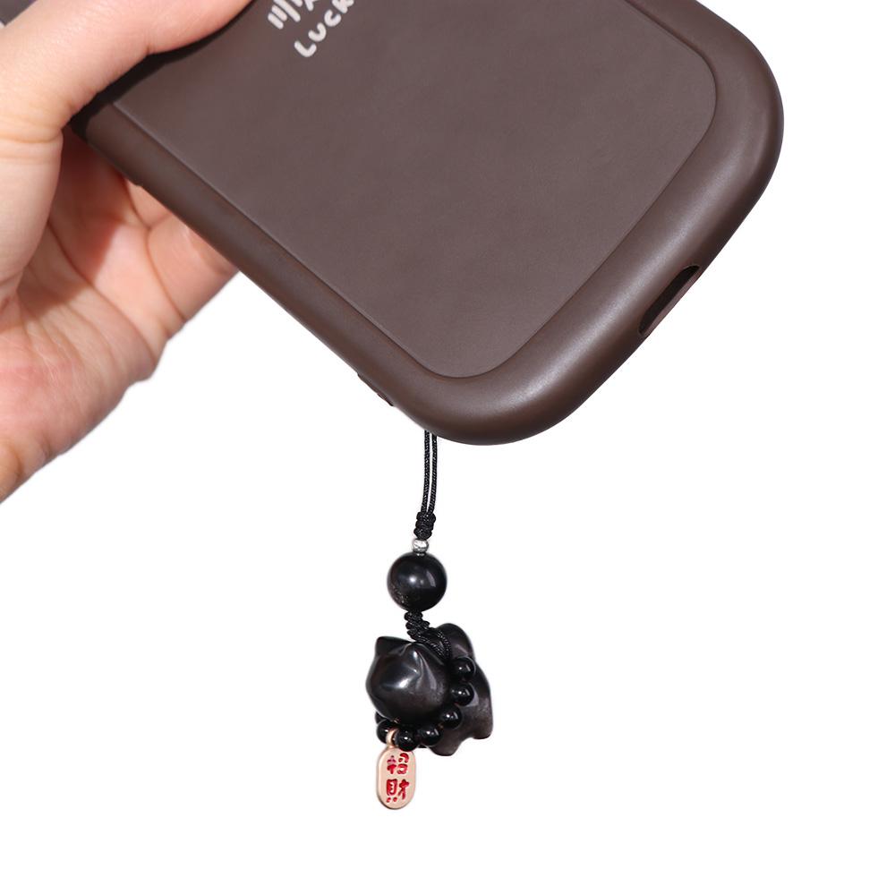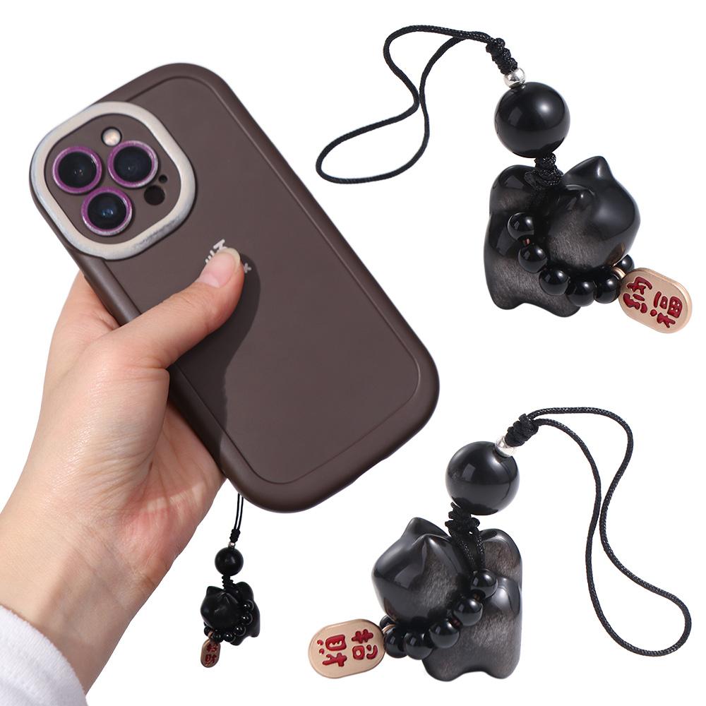 Плетеная веревка Lucky Cat Braid Веревка Подвеска Серебряный Обсидиан Кот Брелок для автомобиля Сумка Подвески Для Мужчин Женщин