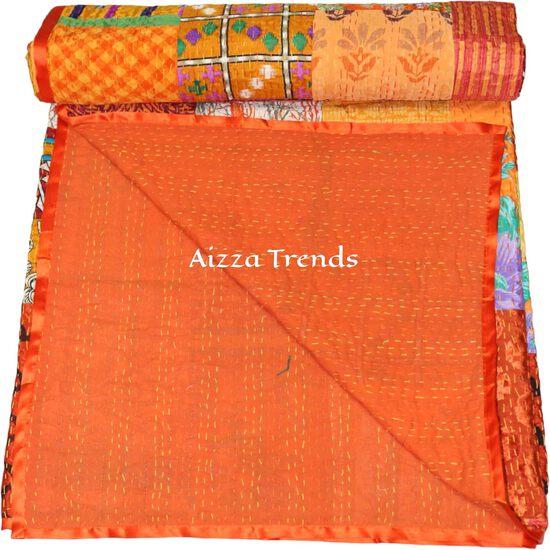 Aizza Trends Стеганое одеяло канха ручной работы из чистого хлопка с нашивками и работой патола - Традиционное индийское покрывало - Винтажное стеганое одеяло из хлопка и шелка сари