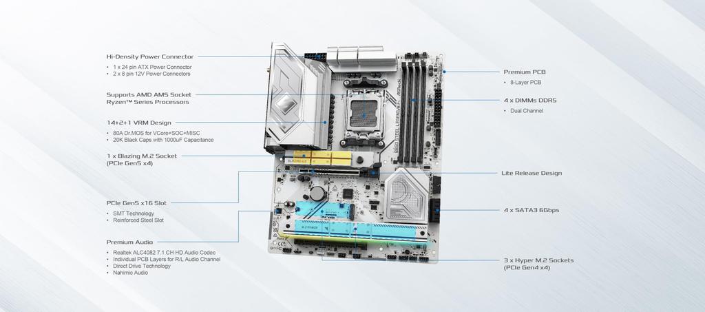 Материнская плата ASRock B850 Steel Legend WiFi AMD Ryzen 9000 8000 7000 Series CPU Совместимая материнская плата DDR5 ATX Авторизованный дистрибьютор / / (Сокет AM5)