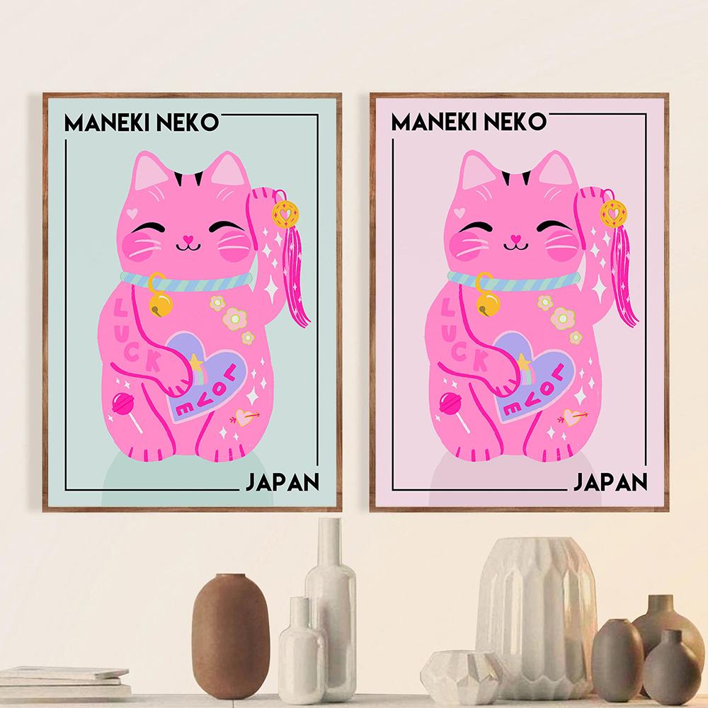 Японский Манеки Счастливый Кот Картина Холст Любитель Котов Кавайный Арт Плакат Печать Мультфильм Настенные Картины Детская Комната Девочек Домашний Декор