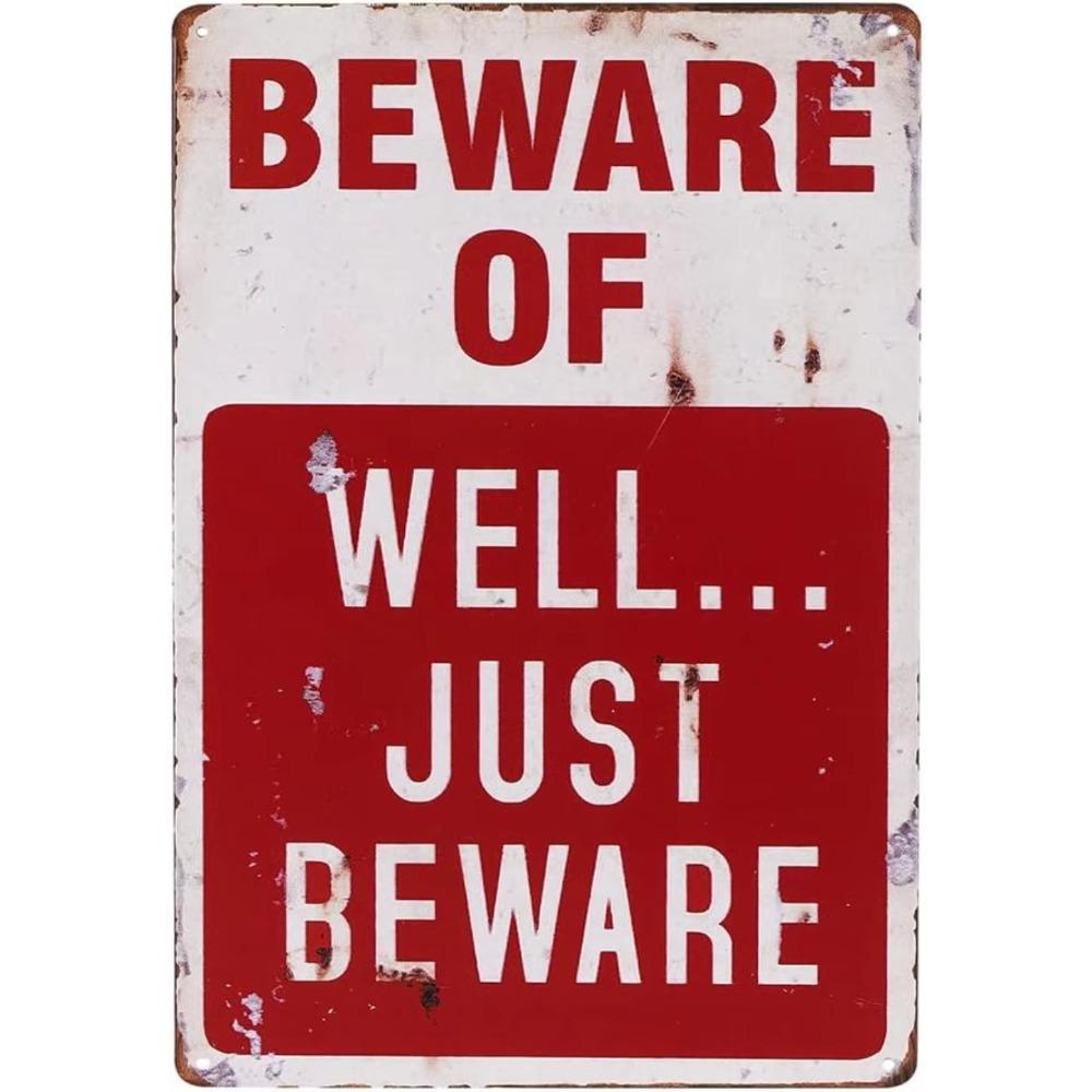 BEWARE OF WELL JUST Винтажный металлический знак, идеально подходящий для декора гаража, а также для мужского домашнего декора в качестве красивого элемента декора из олова