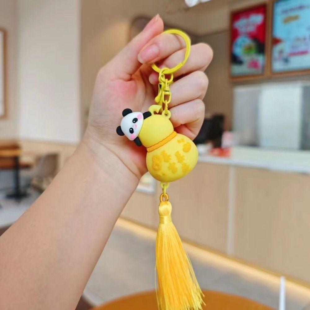 Милый кулон в виде панды, мультяшный брелок для ключей от машины, модный брелок в виде тыквы-горлянки с пандой, для пары
