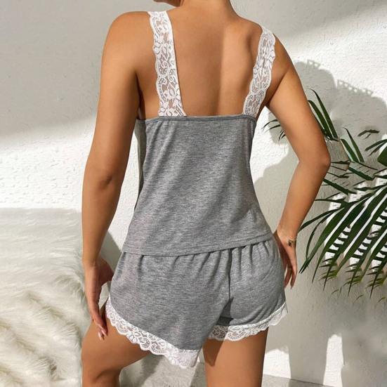 Элегантный кружевной дизайн: Придайте изысканность этому модному пижамному комплекту с кружевными деталями.. Замысловатый кружевной дизайн добавляет элегантности и сексуальности, сохраняя при этом оптимальный комфорт и воздухопроницаемость.. Дополните свою коллекцию домашней одежды этим стильным и удобным комплектом.