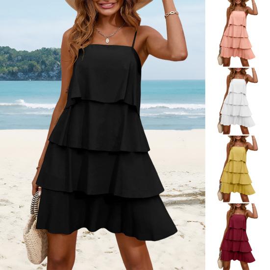 Привлекательный свободный крой и оборчатый дизайн: Благодаря свободному силуэту на талии и изящным воланам это платье визуально удлиняет пропорции вашего тела, подчеркивая элегантность и женственность.. Откройте для себя изысканность с дизайном, который излучает очарование и изящество.