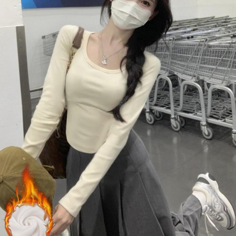 Утепленная белая рубашка-боди с квадратным воротником для женщин, тонкая футболка из немецкого вельвета с длинными рукавами для женщин, подчеркивающая фигуру