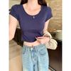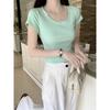 Футболка из чистого хлопка с U-образным вырезом спереди и короткими рукавами для женщин, летняя, новая, маленькая, короткая, облегающая, топ