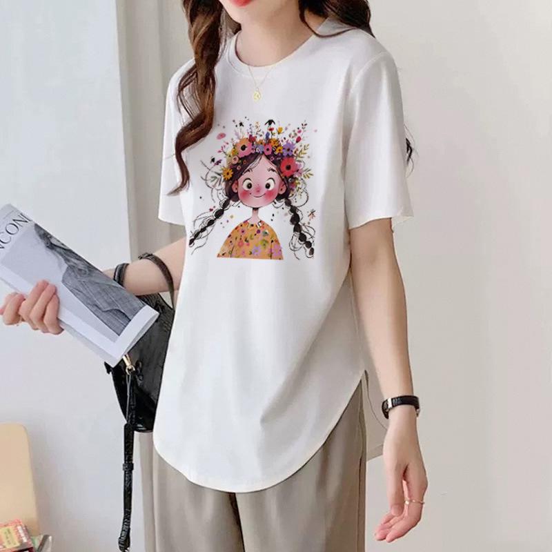 Белая футболка с короткими рукавами для женщин, летняя, новая, закругленный подол, свободный, однотонный, стильный, уникальный топ с короткими рукавами