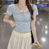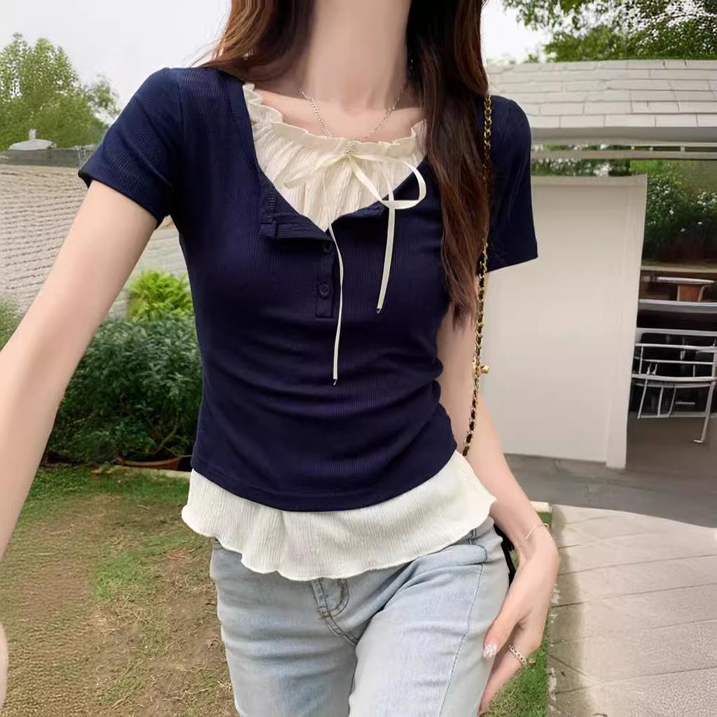 Футболка из двух частей с короткими рукавами в стиле Pure Desire, женская летняя женская одежда, новый короткий топ с черными ушками
